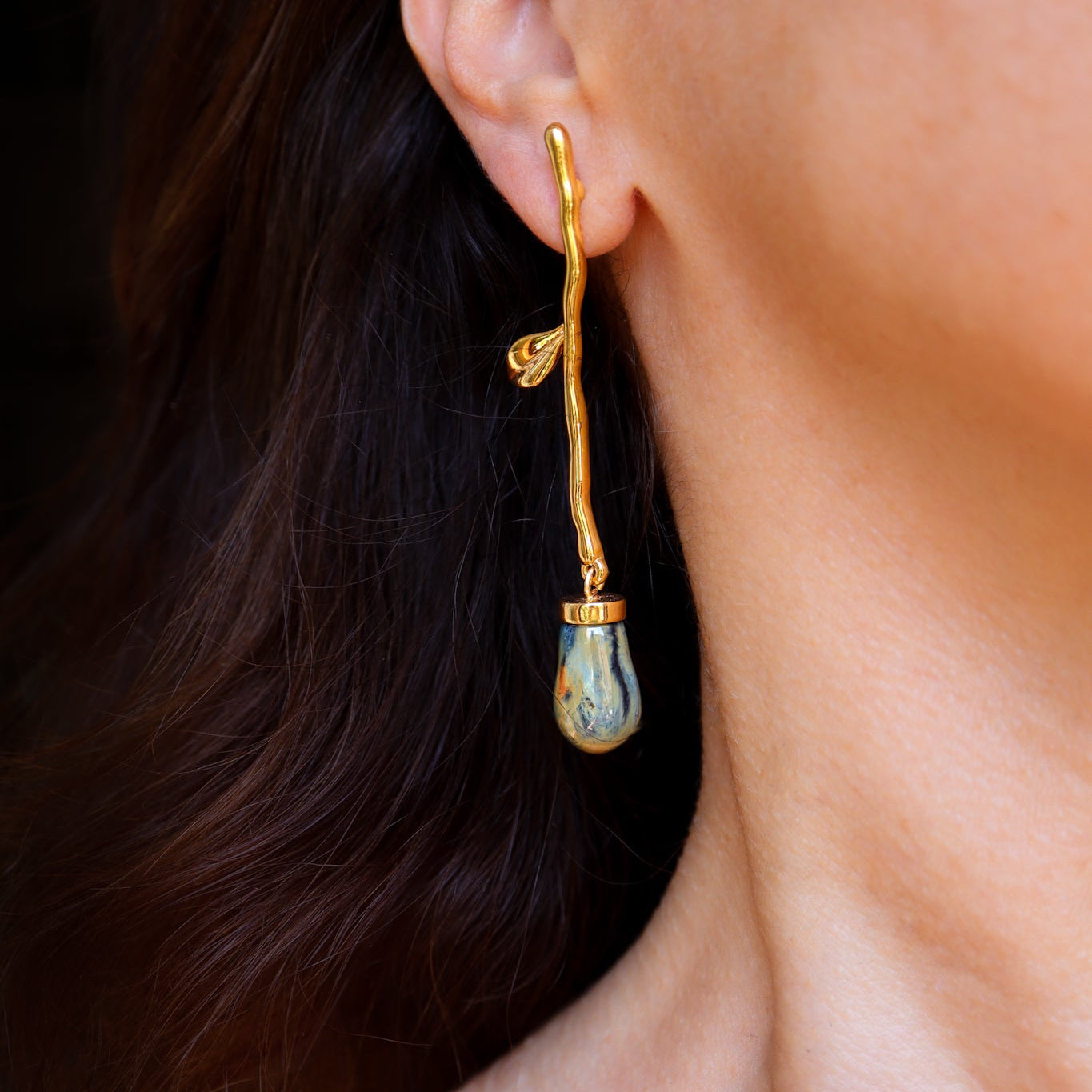 Opulent Deco Earrings Citrine Ocean Twig Amber