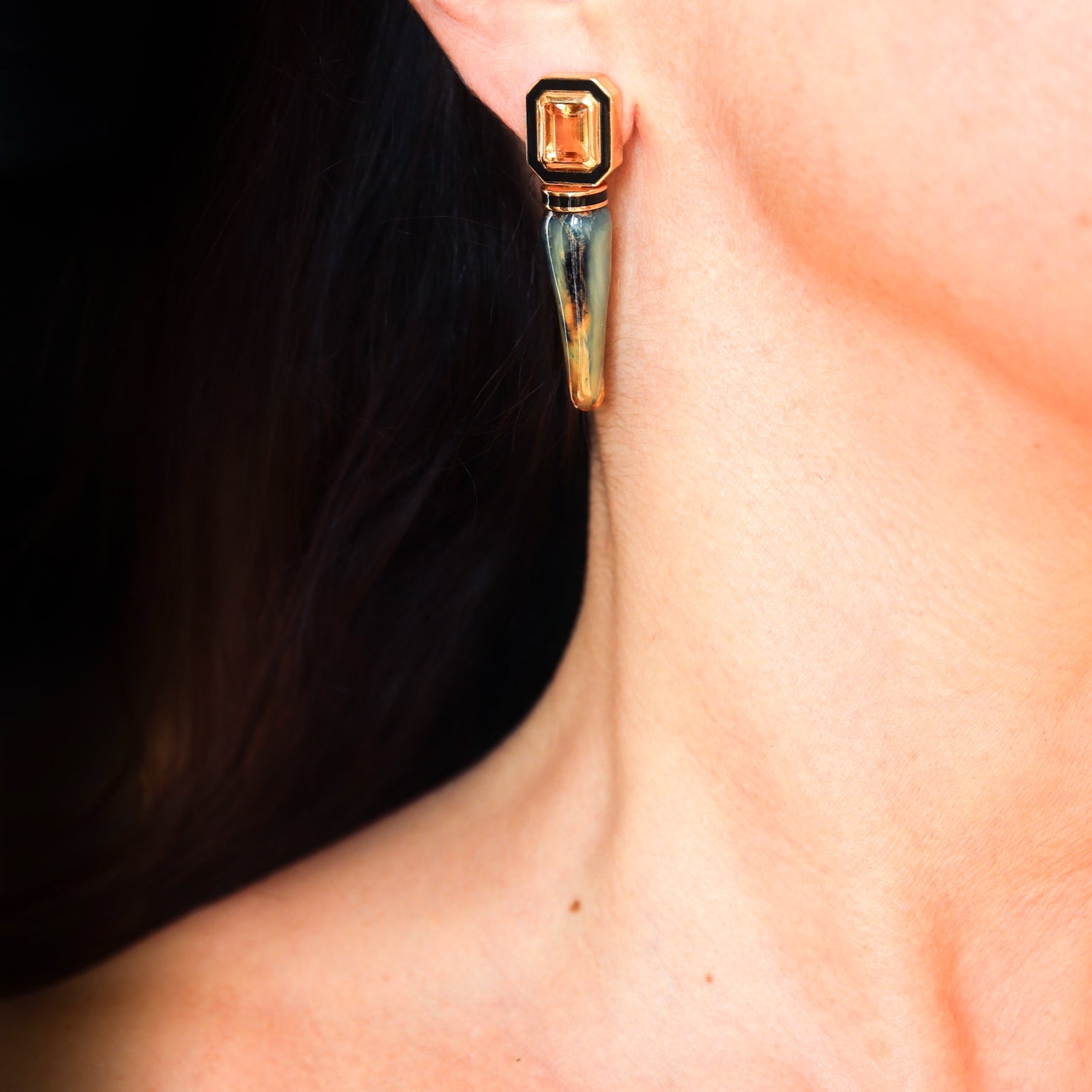 Opulent Deco Earrings Citrine Ocean Twig Amber