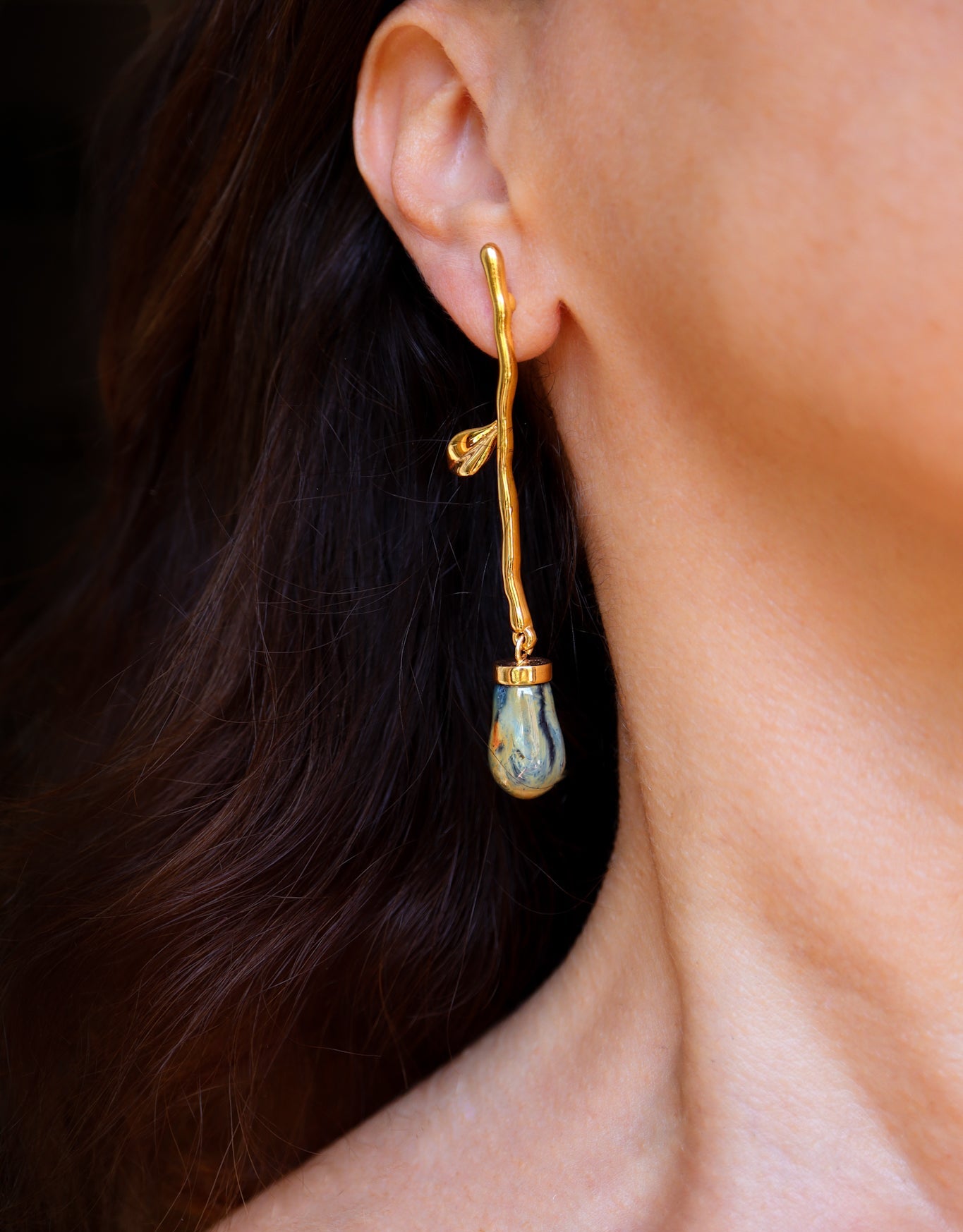 22 K gold plated earrings with hand sculptured porcelain drops.