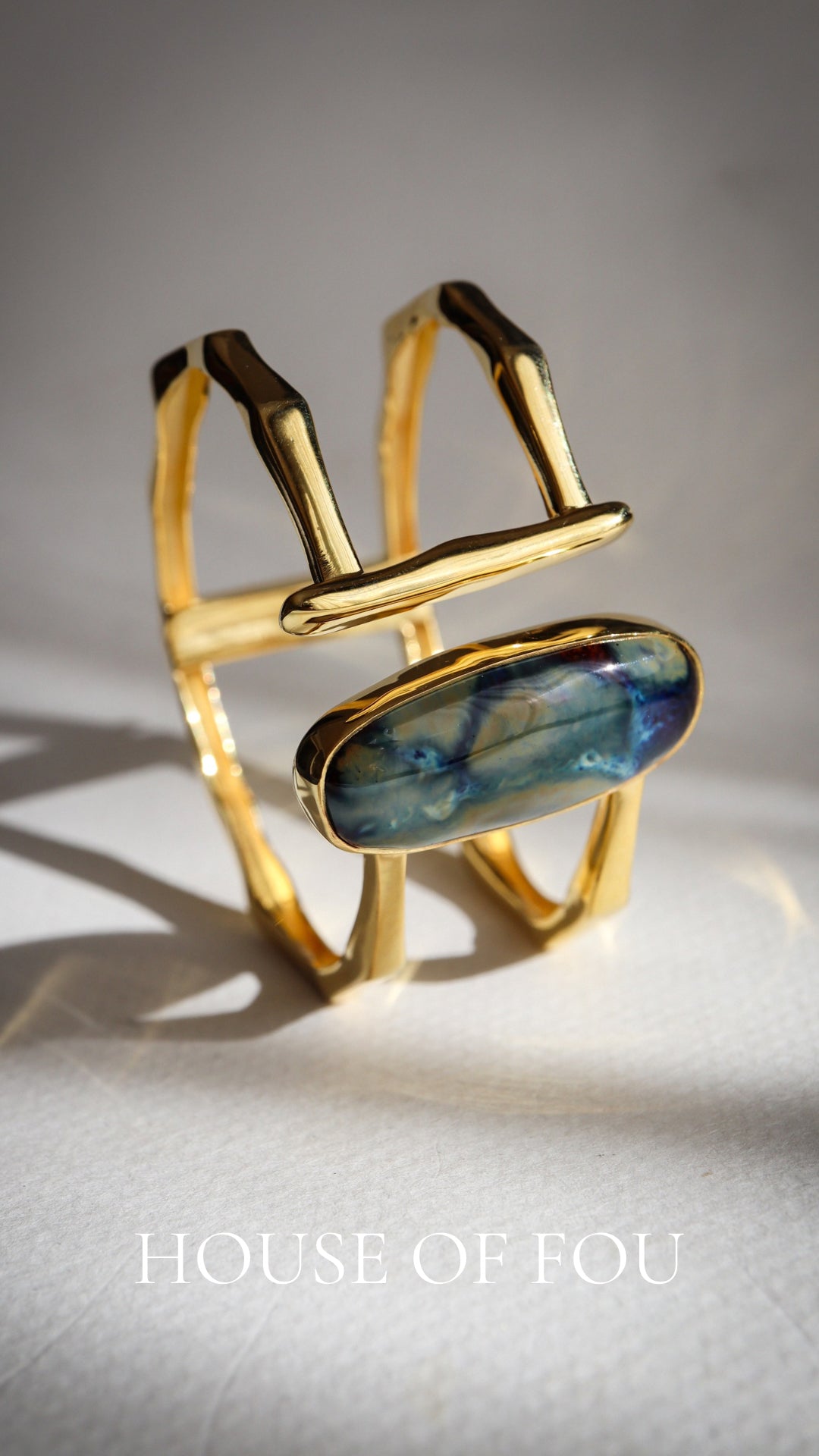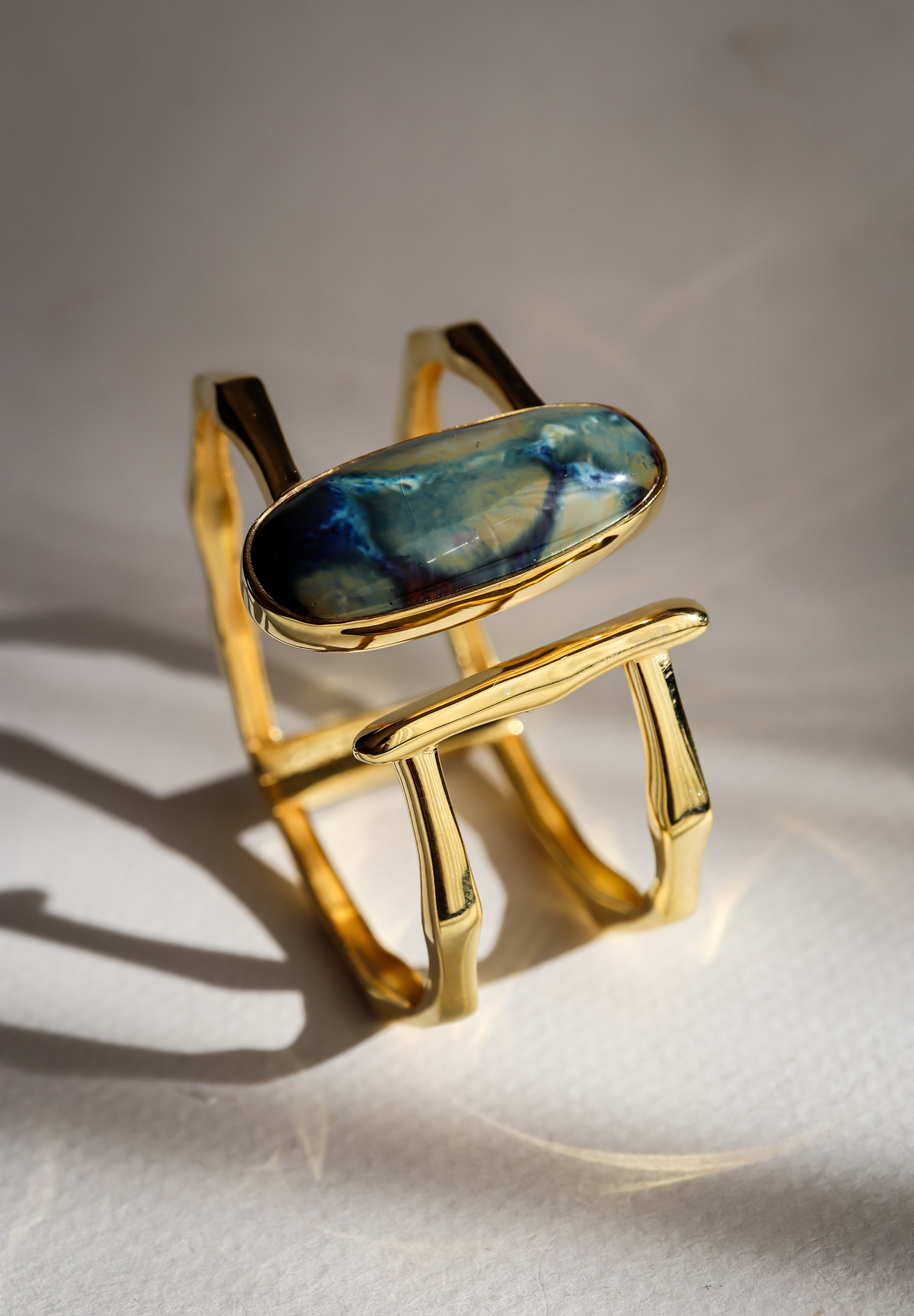 22 K gold plated cuff with hand sculptured porcelain balls.