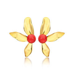 22 K gold plated stud earrings with hand sculptured porcelain balls stud