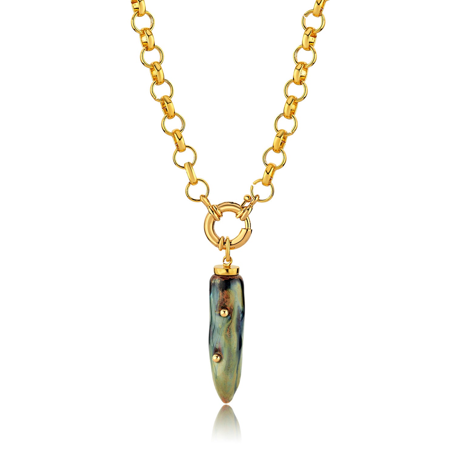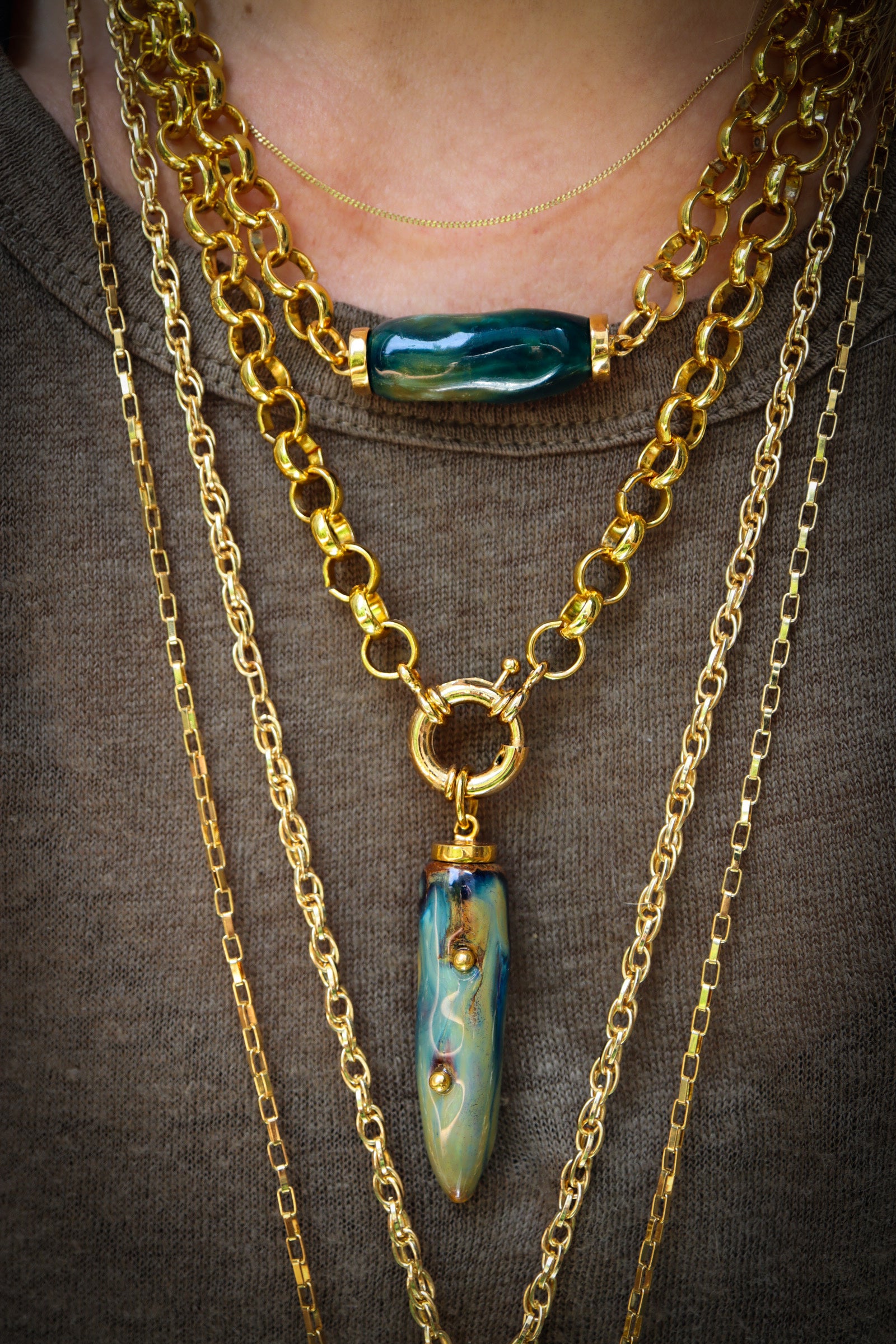 22 K gold plated Necklace with hand sculptured porcelain piece with bon bon embelishment.