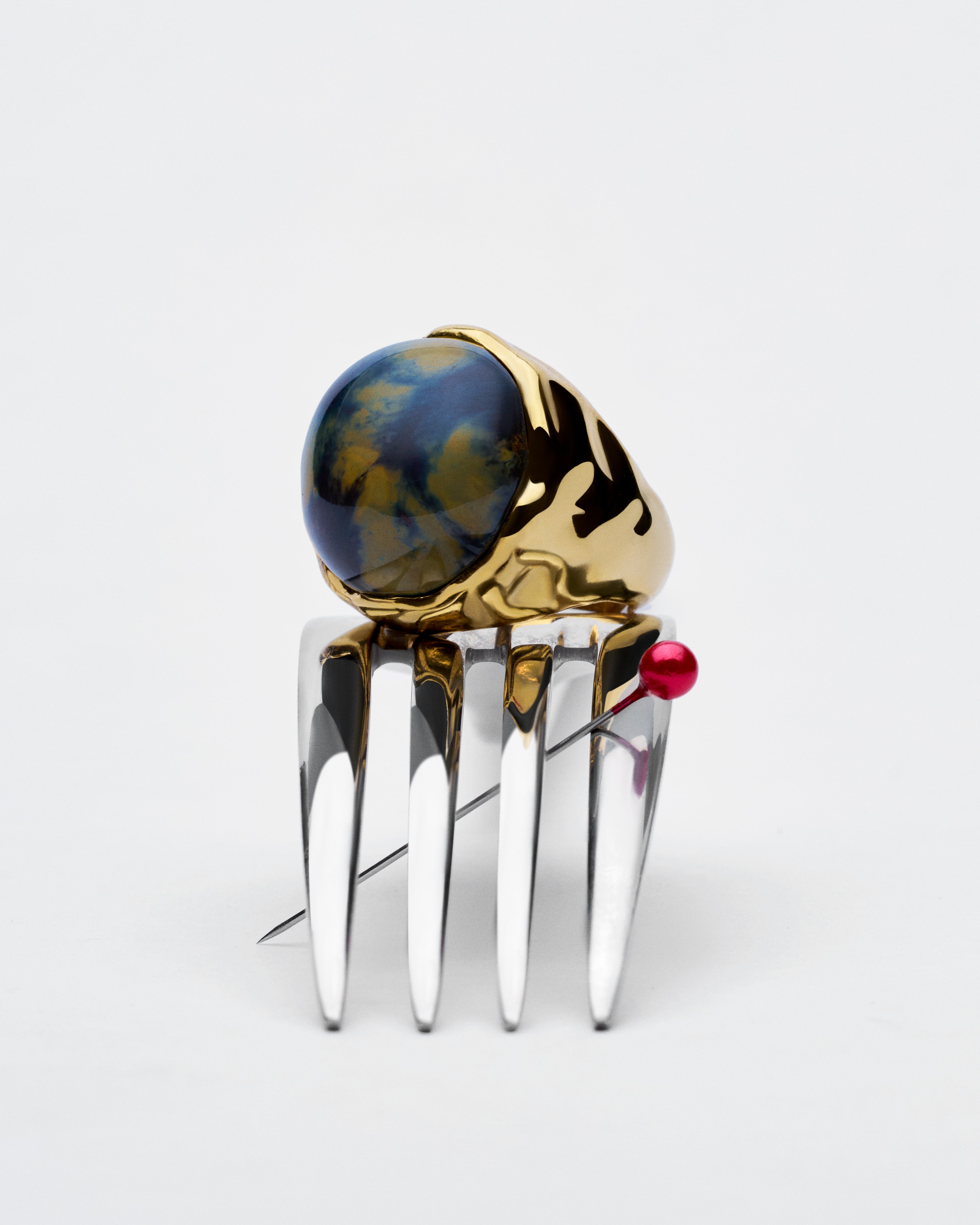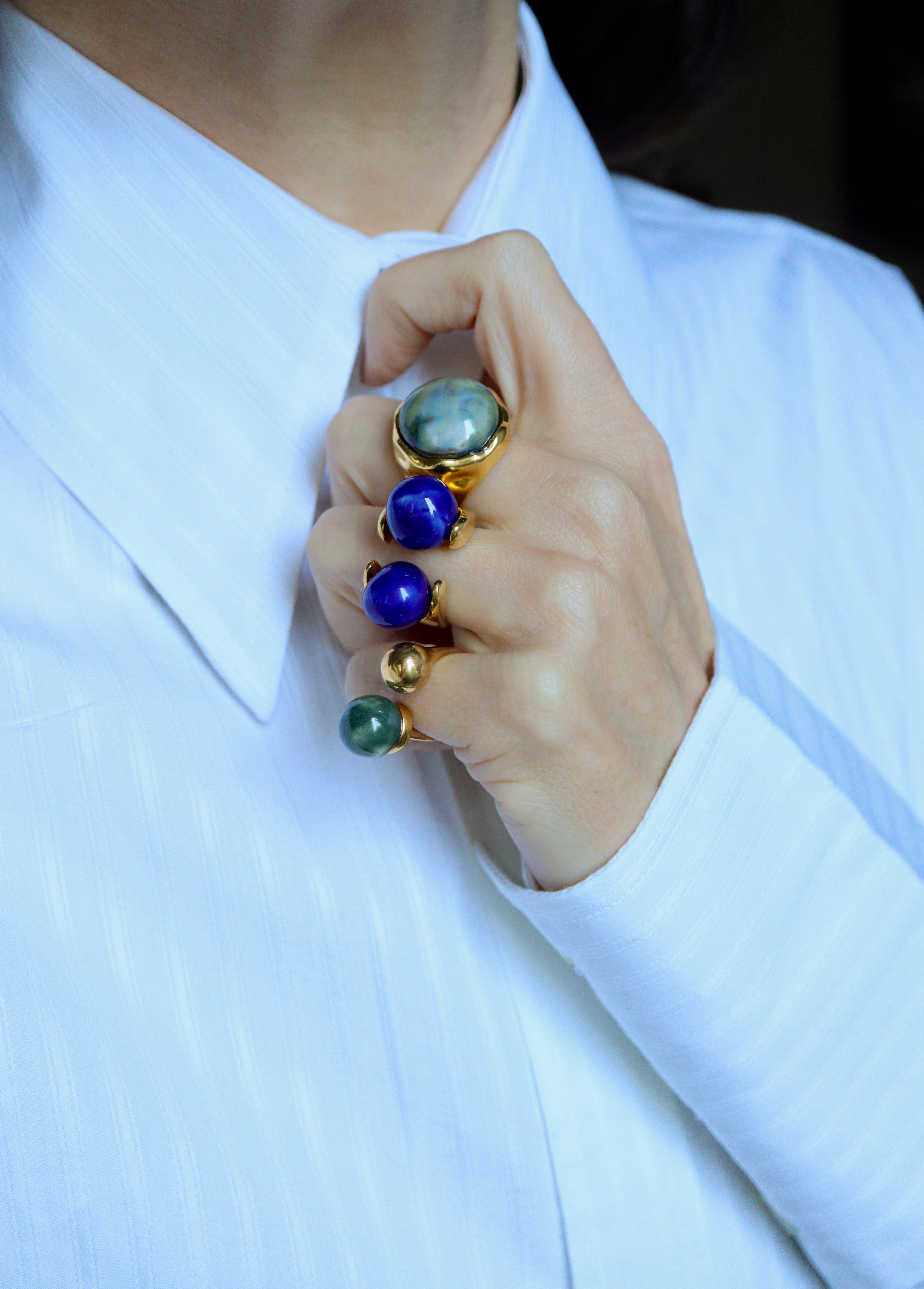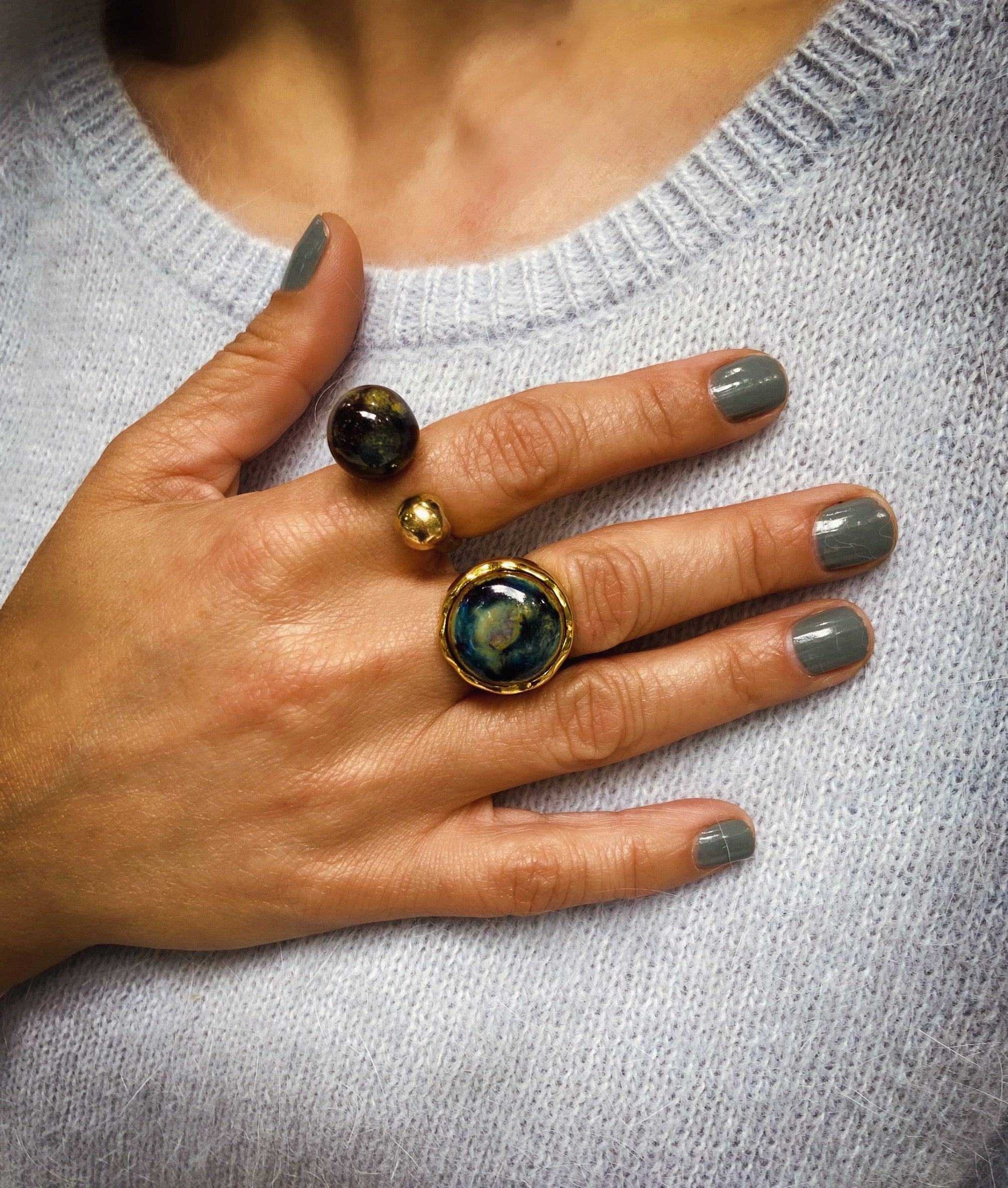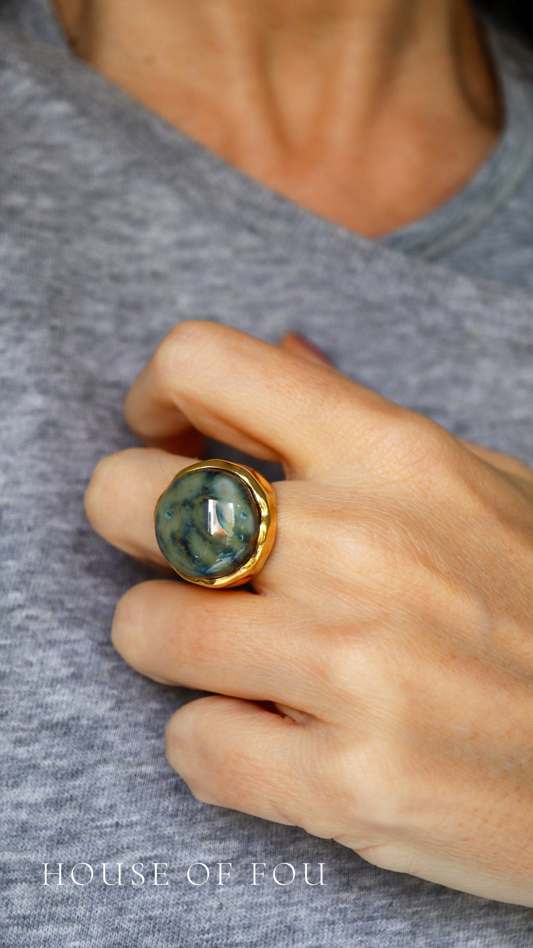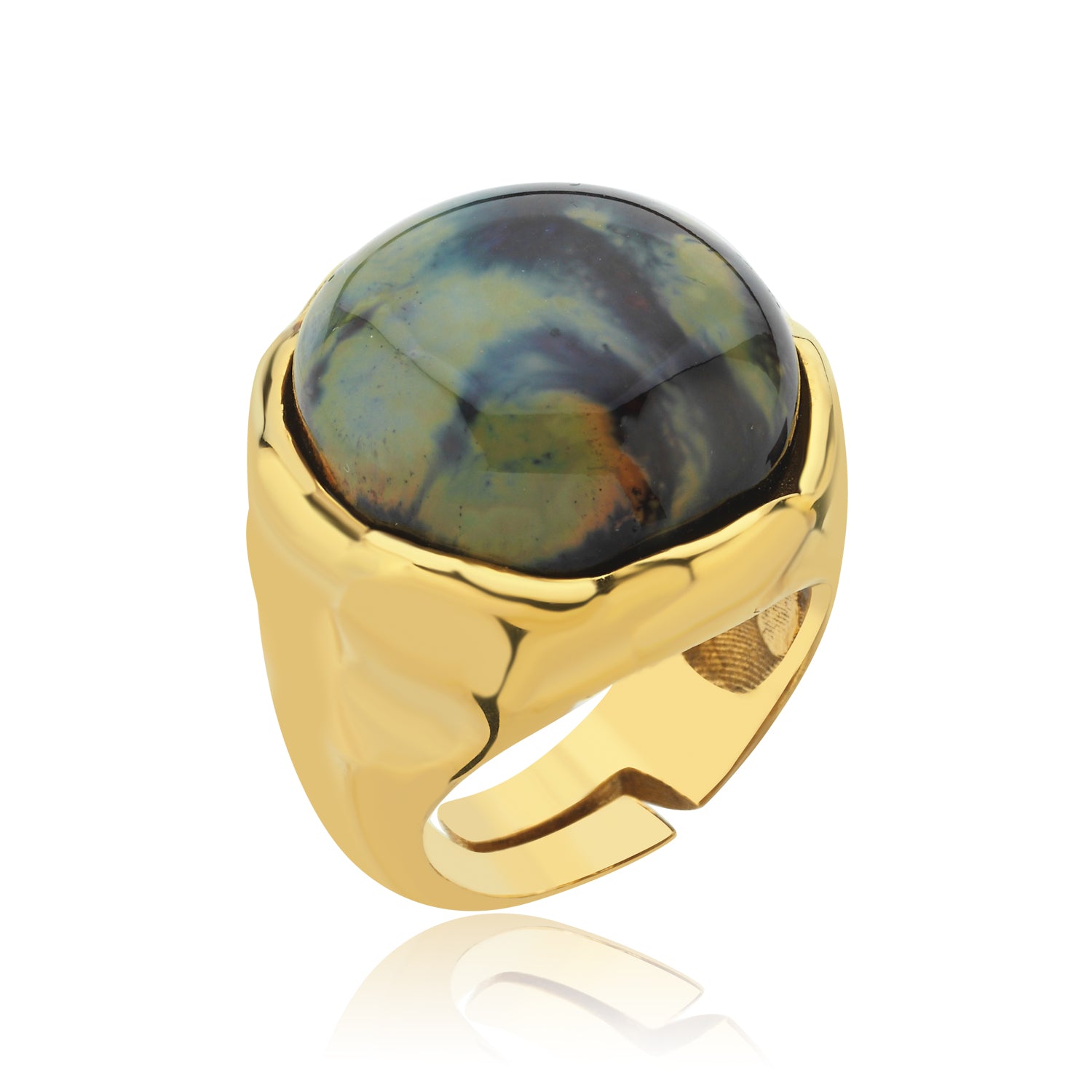 22 K gold plated ring with hand sculptured porcelain stone set.