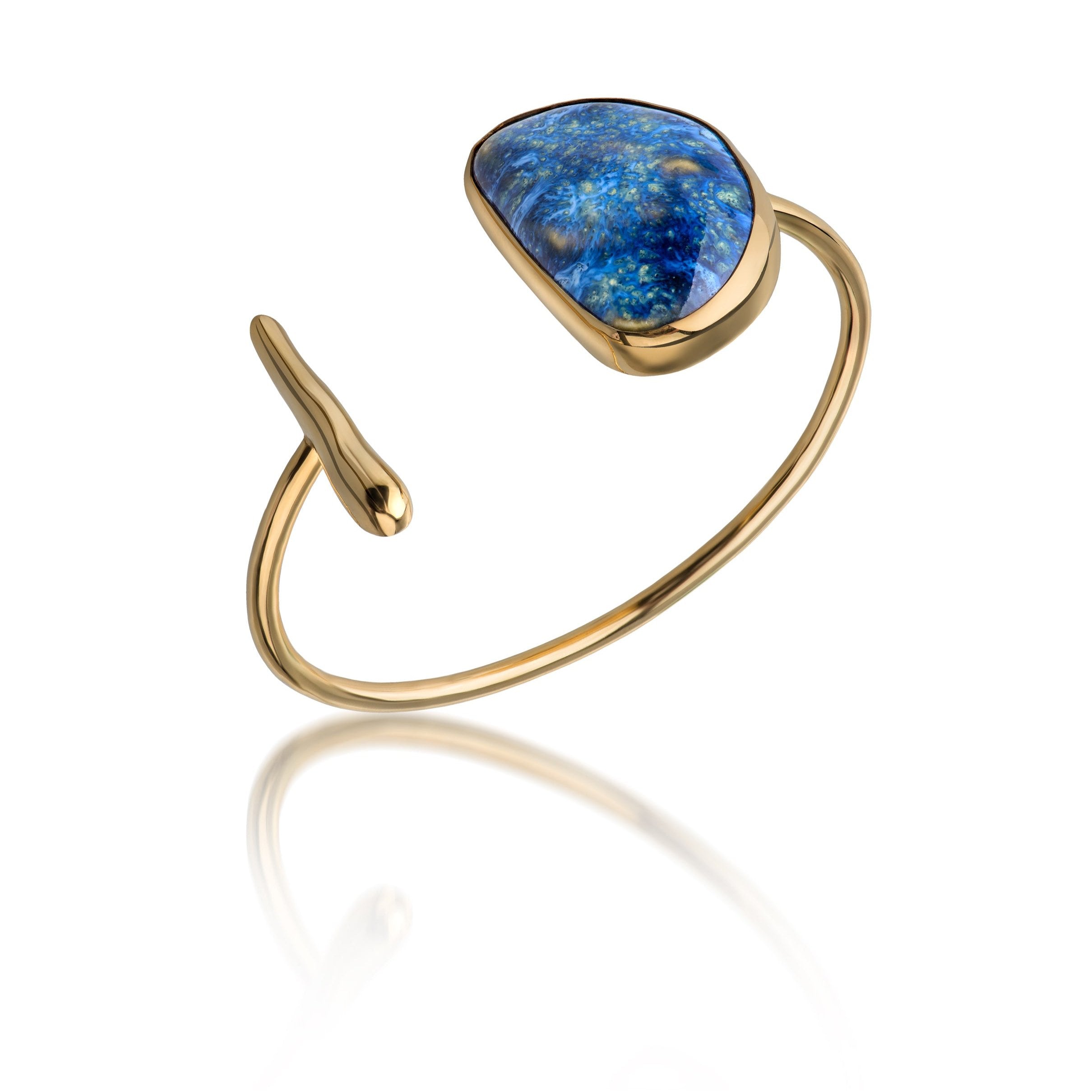 22 K gold plated cuff with hand sculptured porcelain stone set.
