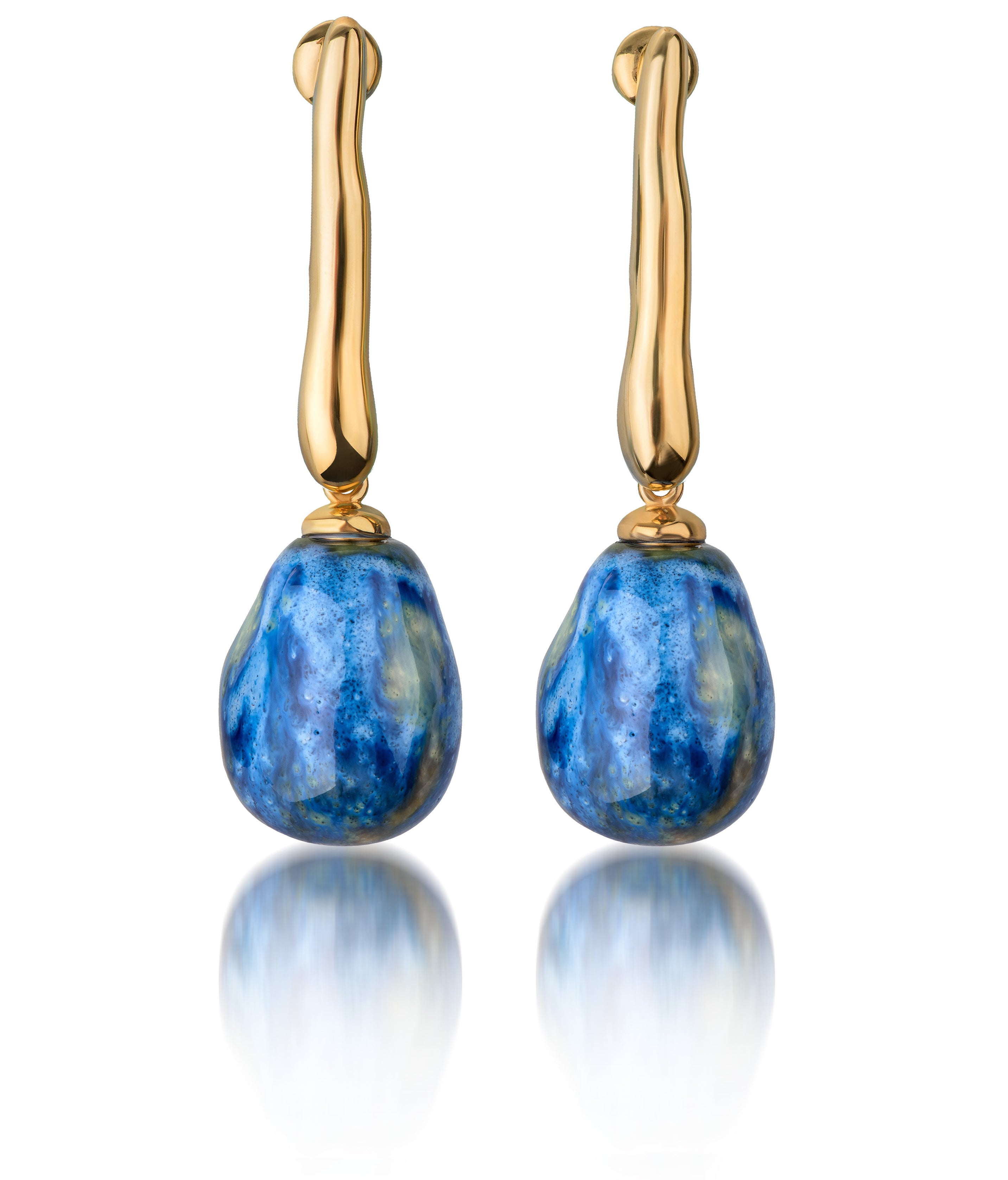 22 K gold plated horseshoe earrings with hand sculptured porcelain drops.
