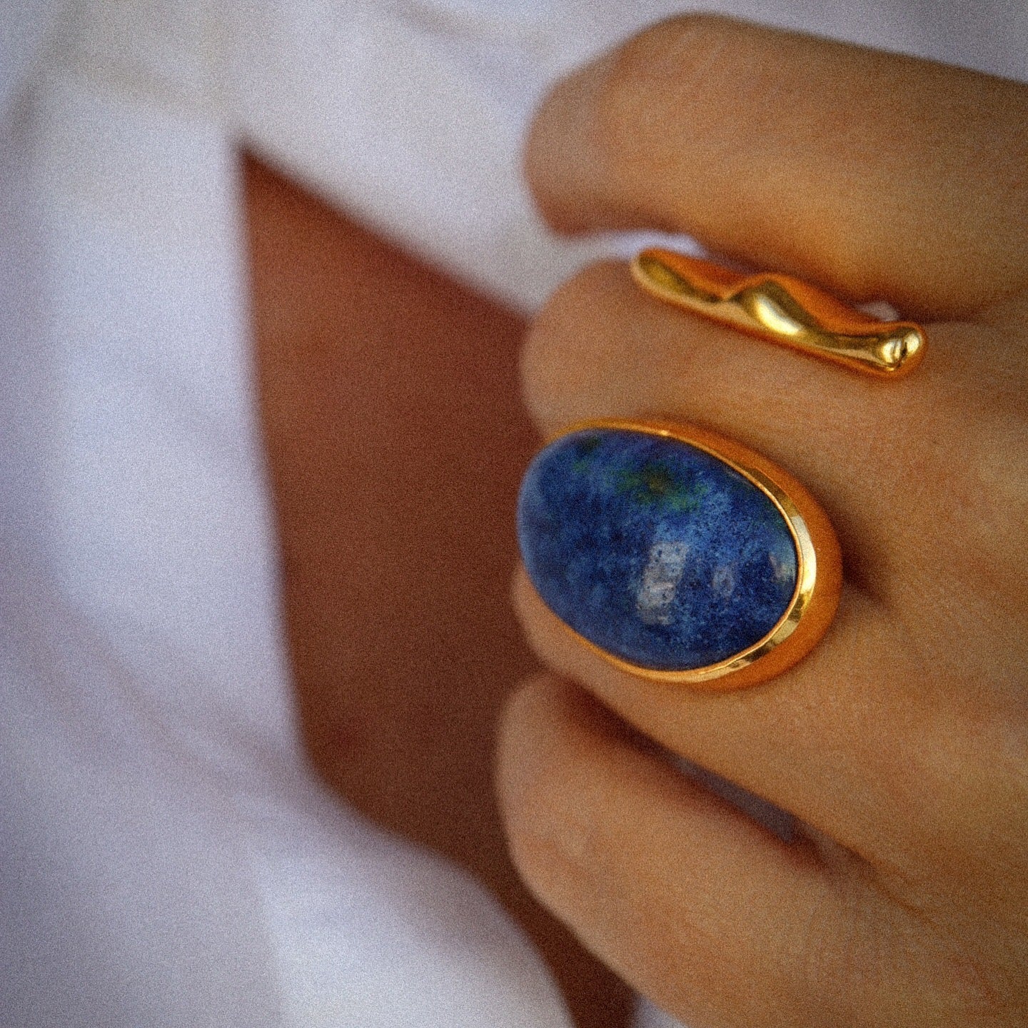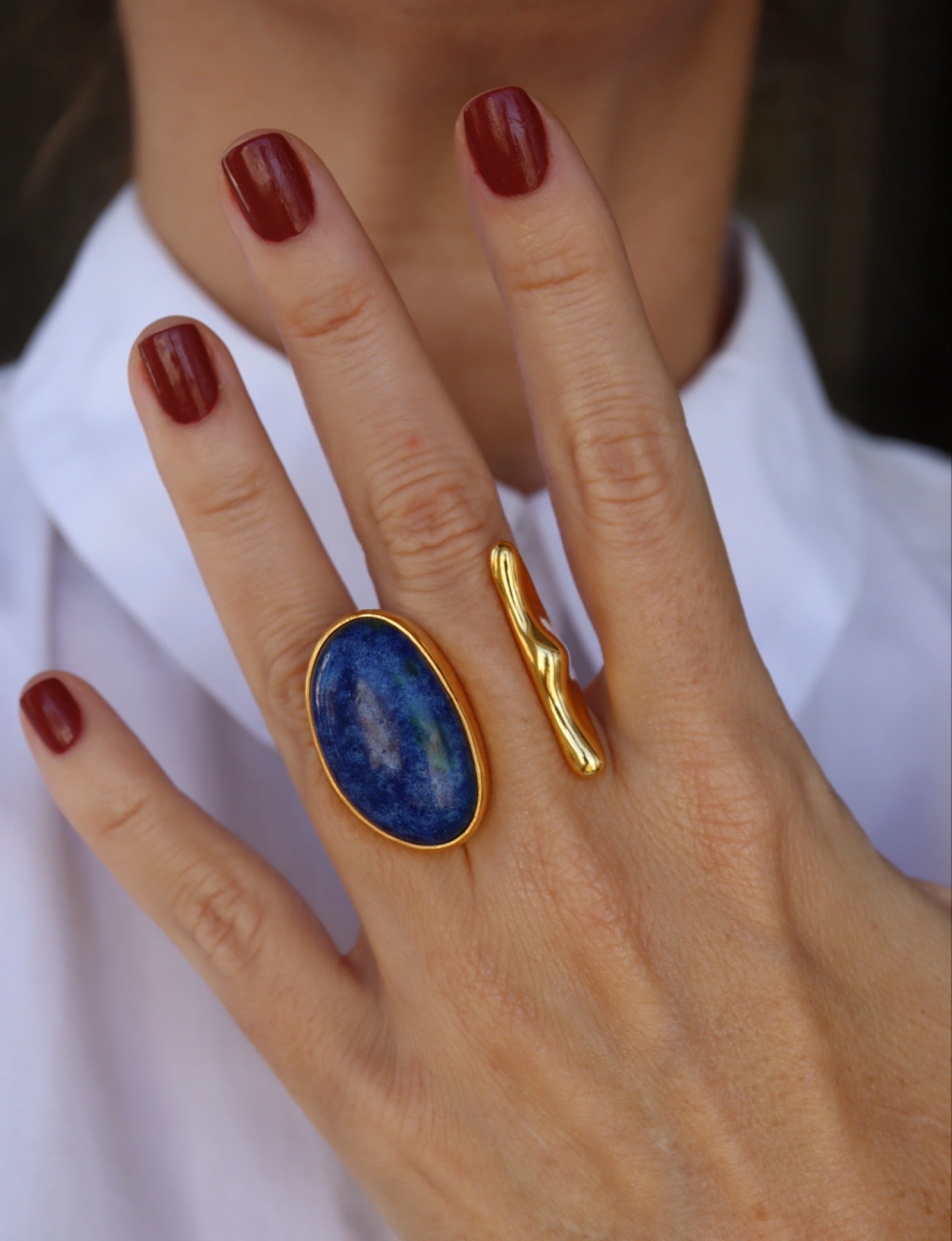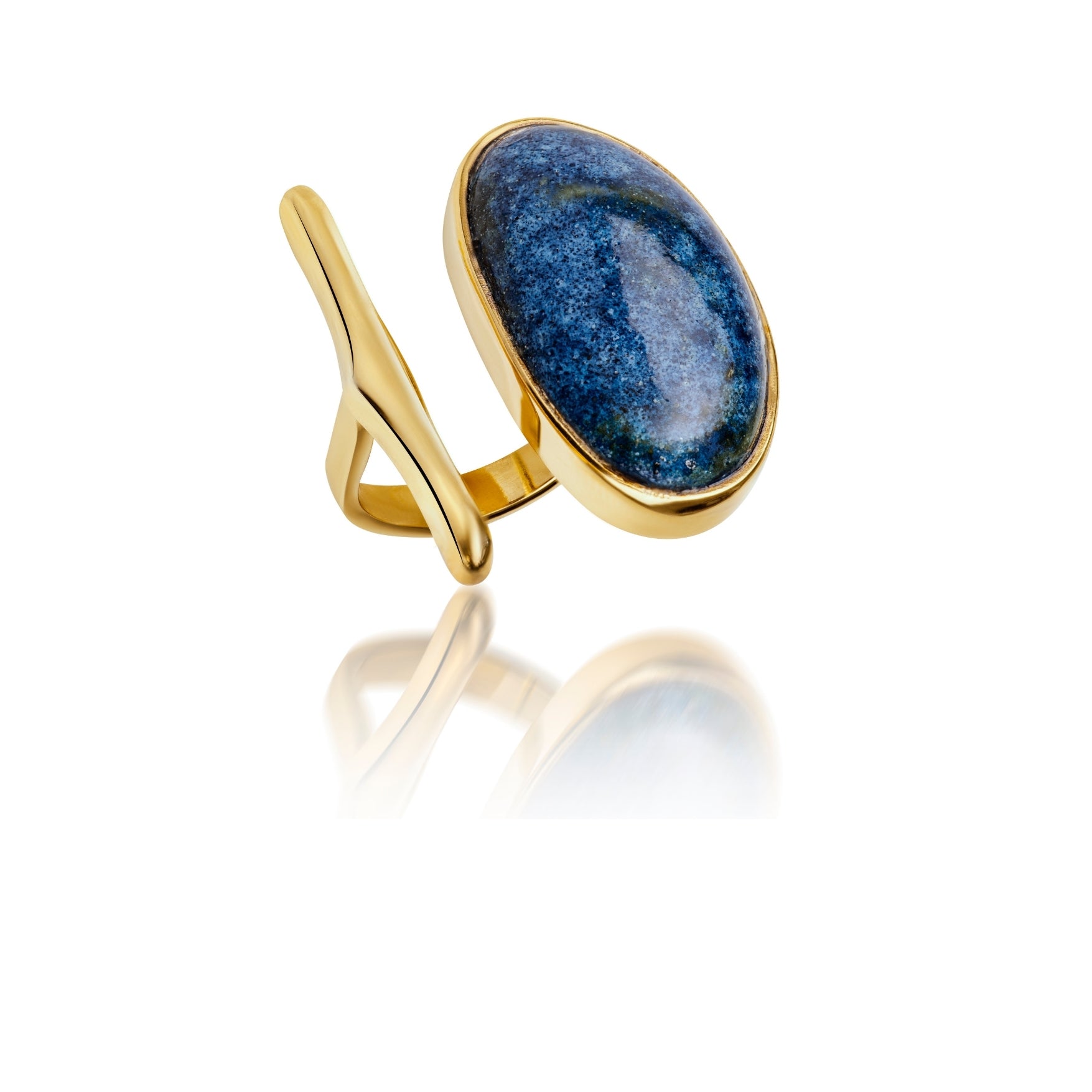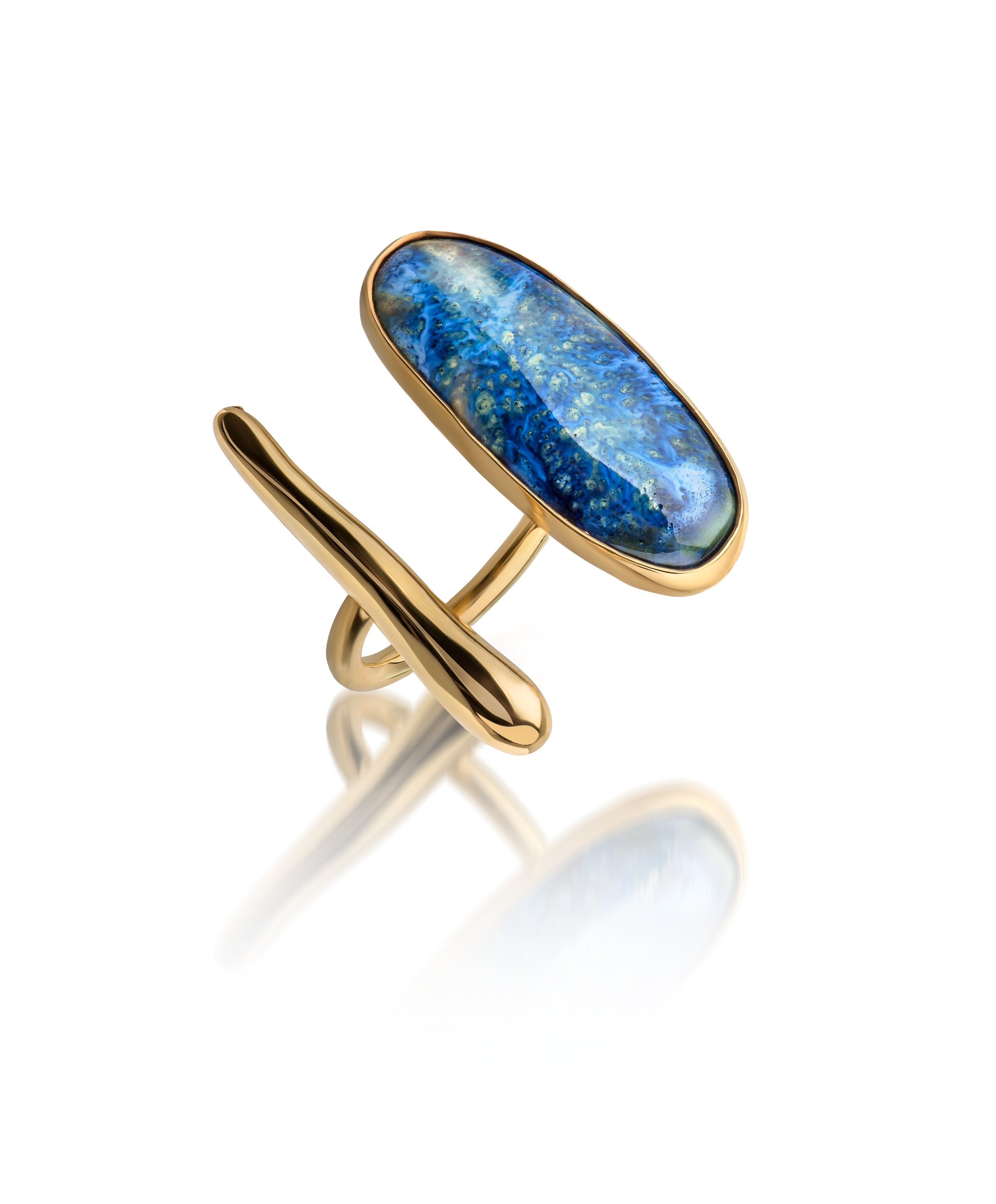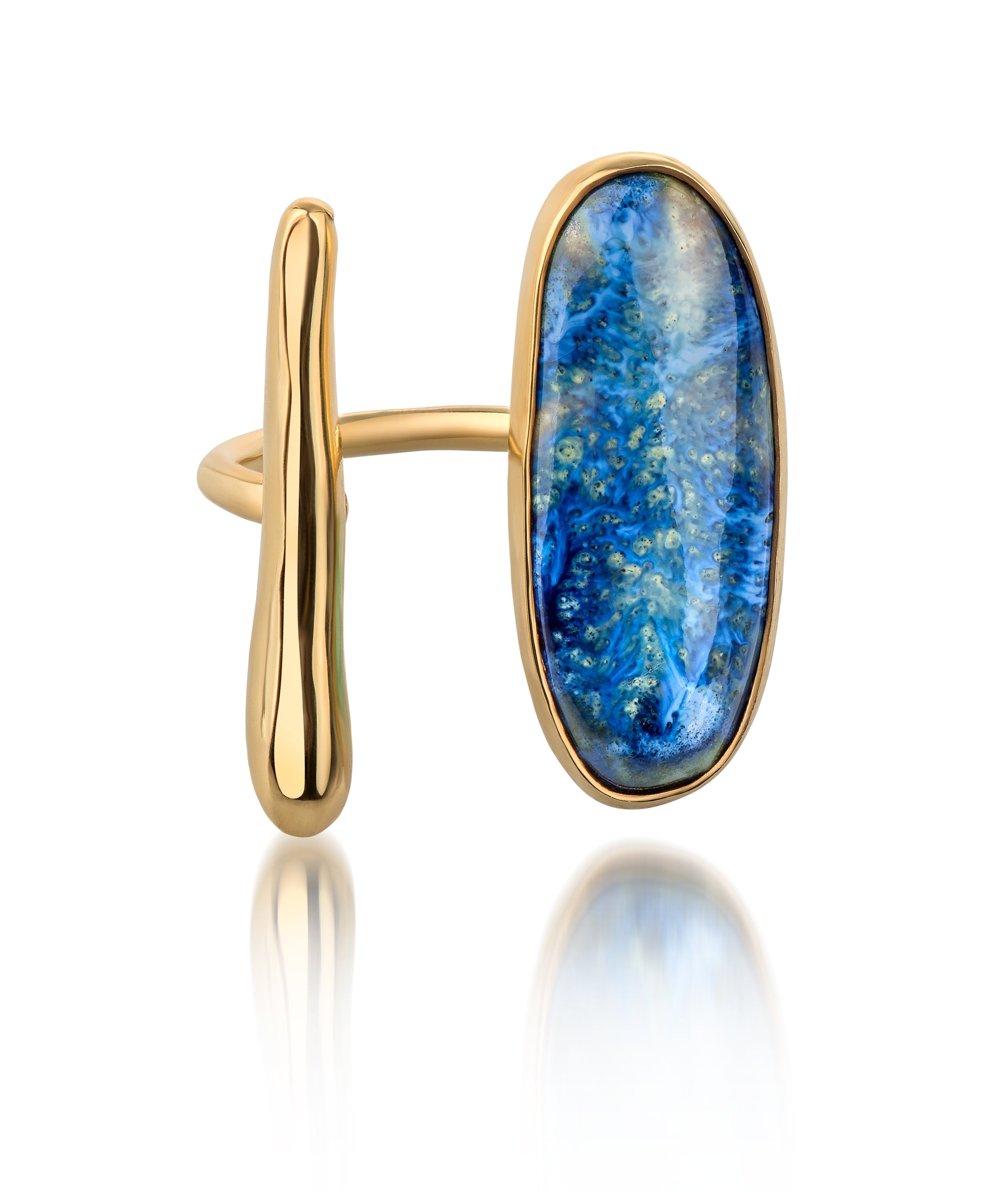22 K gold plated ring with hand sculptured porcelain stone set.