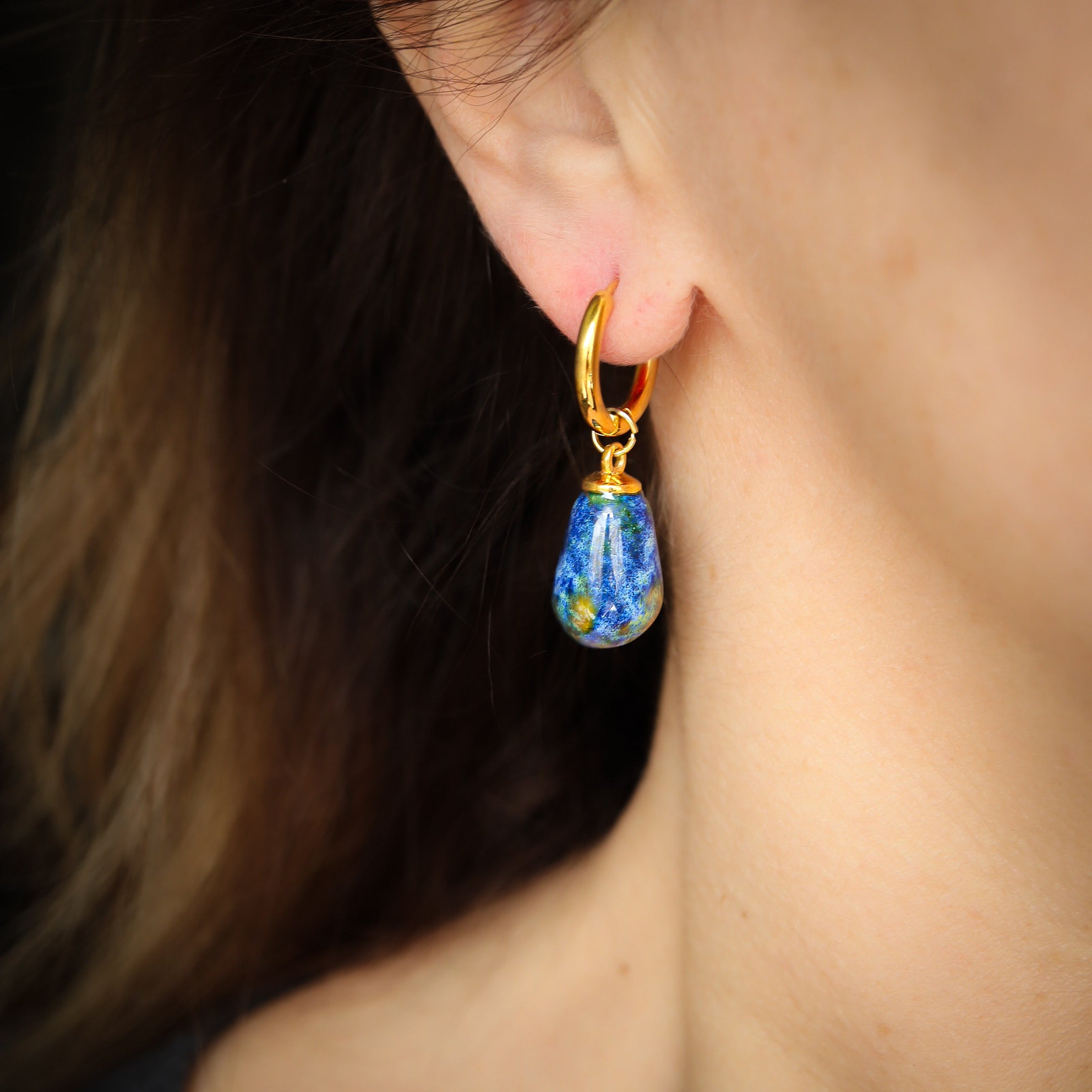 22 K Gold plated earrings with hande made porcelain drops