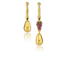 22 K gold plated bold hoop earrings with hand sculptured porcelain drops.