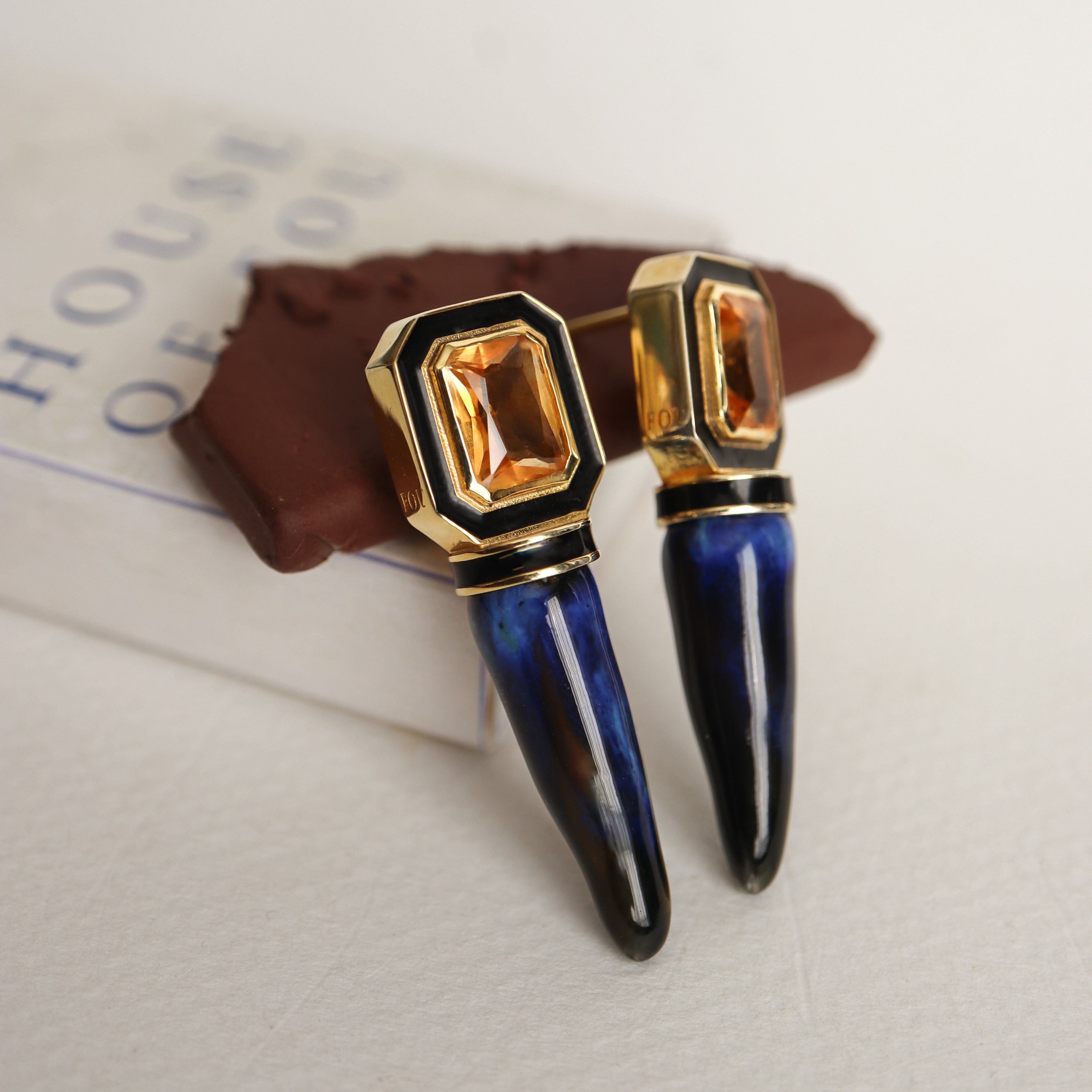 Composition: 8K Citrine, 22K Gold Vermeil with hand made porcelain