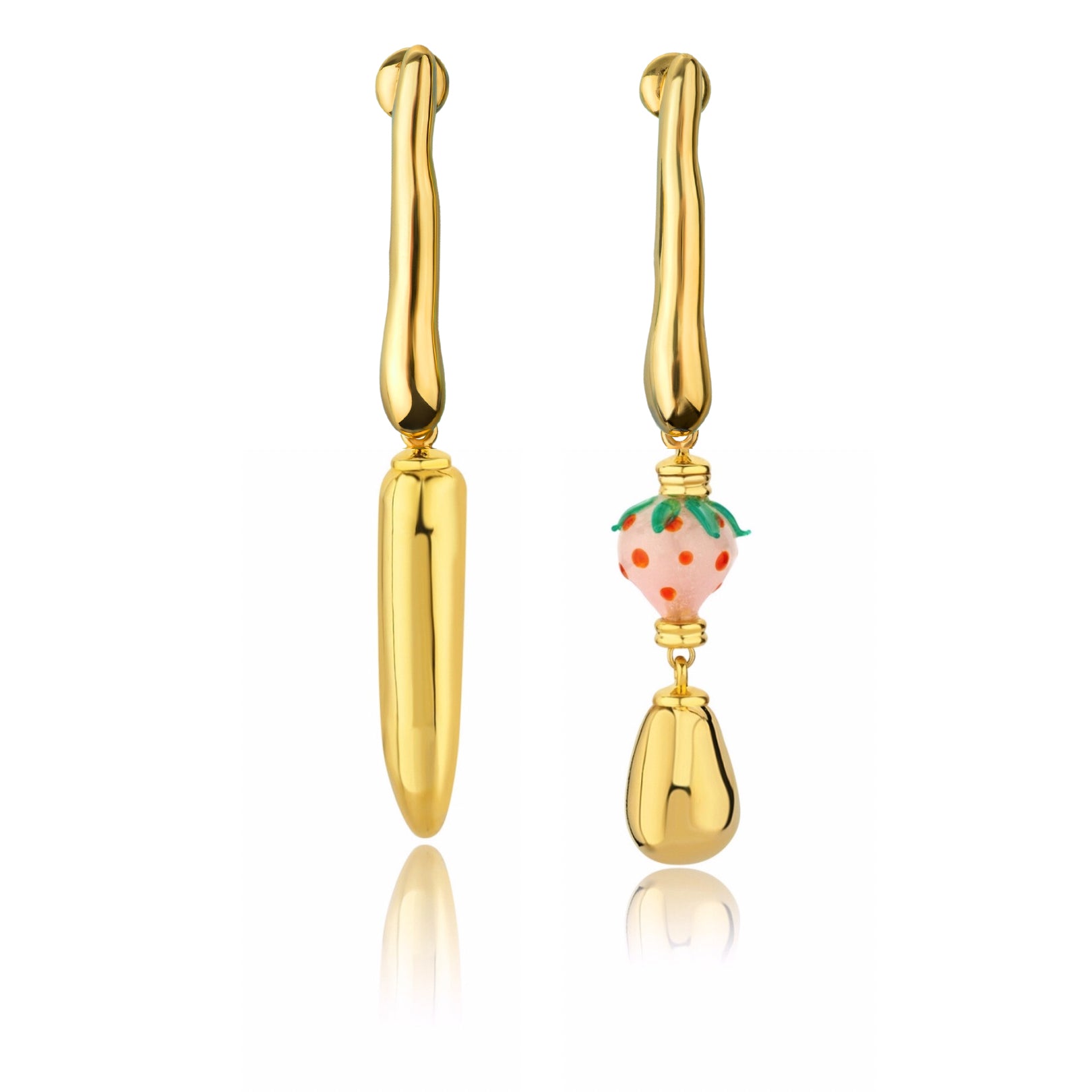 22 K gold plated earrings with hand sculptured porcelain twigs dipped in gold again