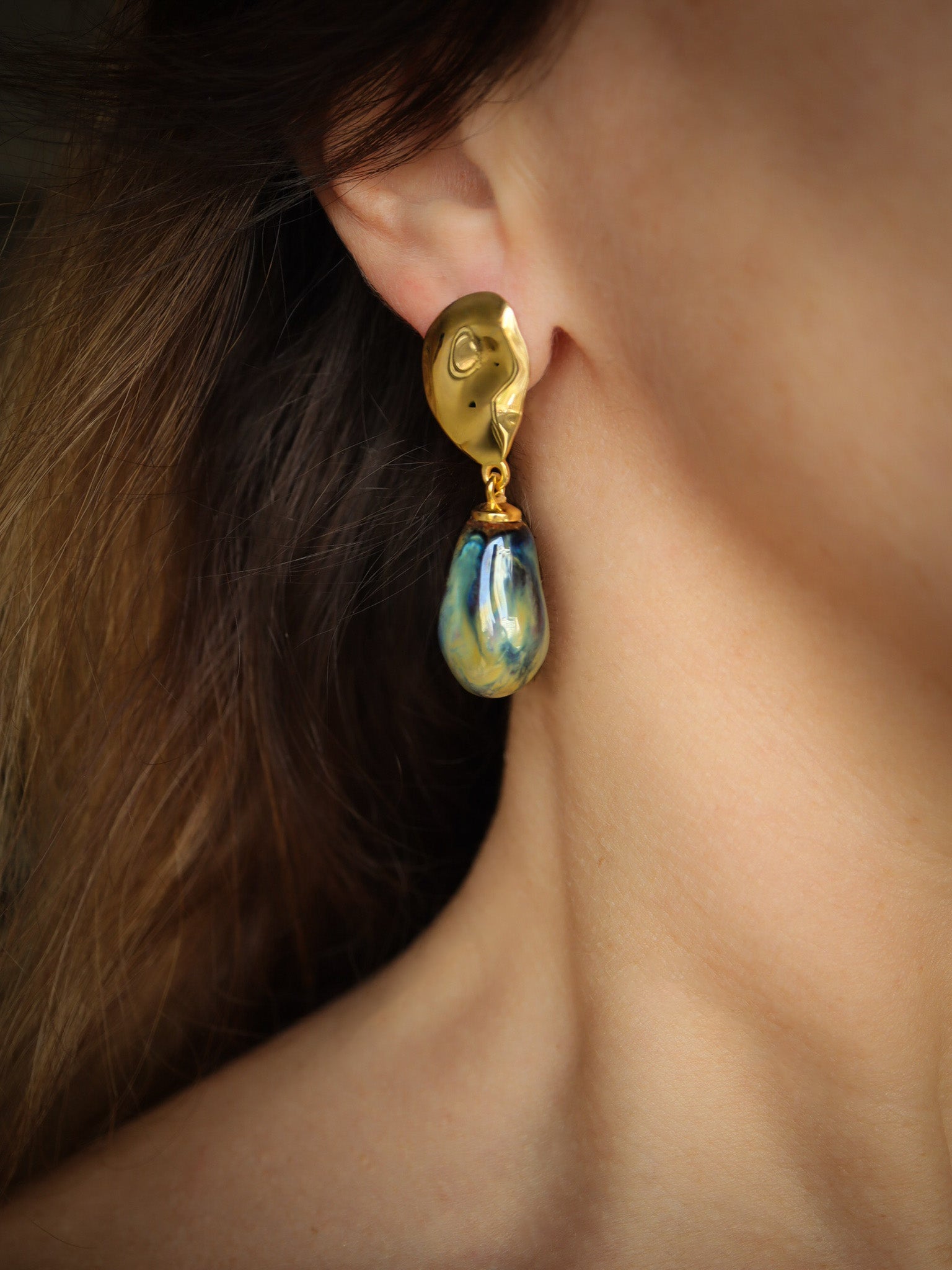 Composition: 22K Gold Plated Bronze with hand made porcelain