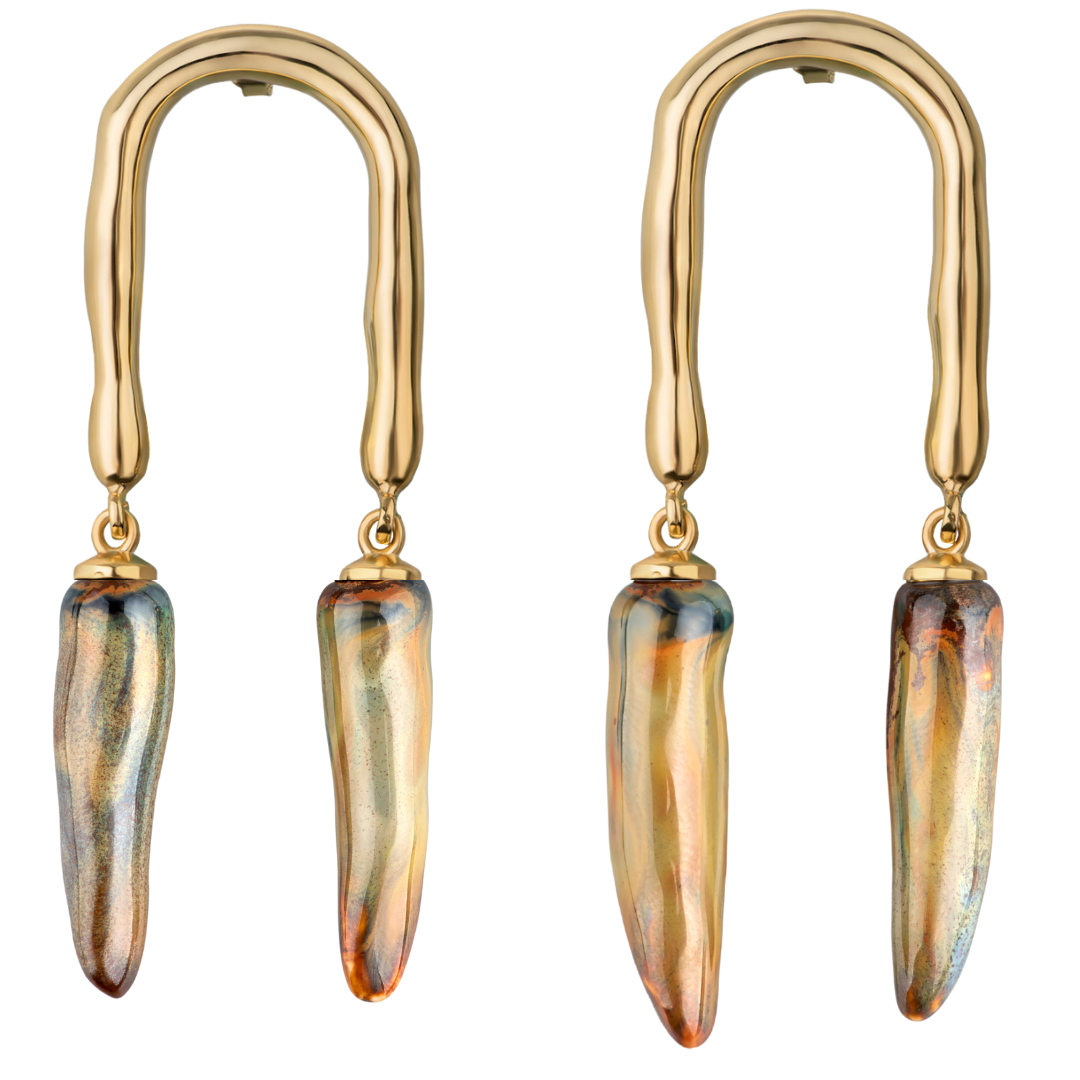 22 K gold plated horseshoe earrings with hand sculptured porcelain twigs.