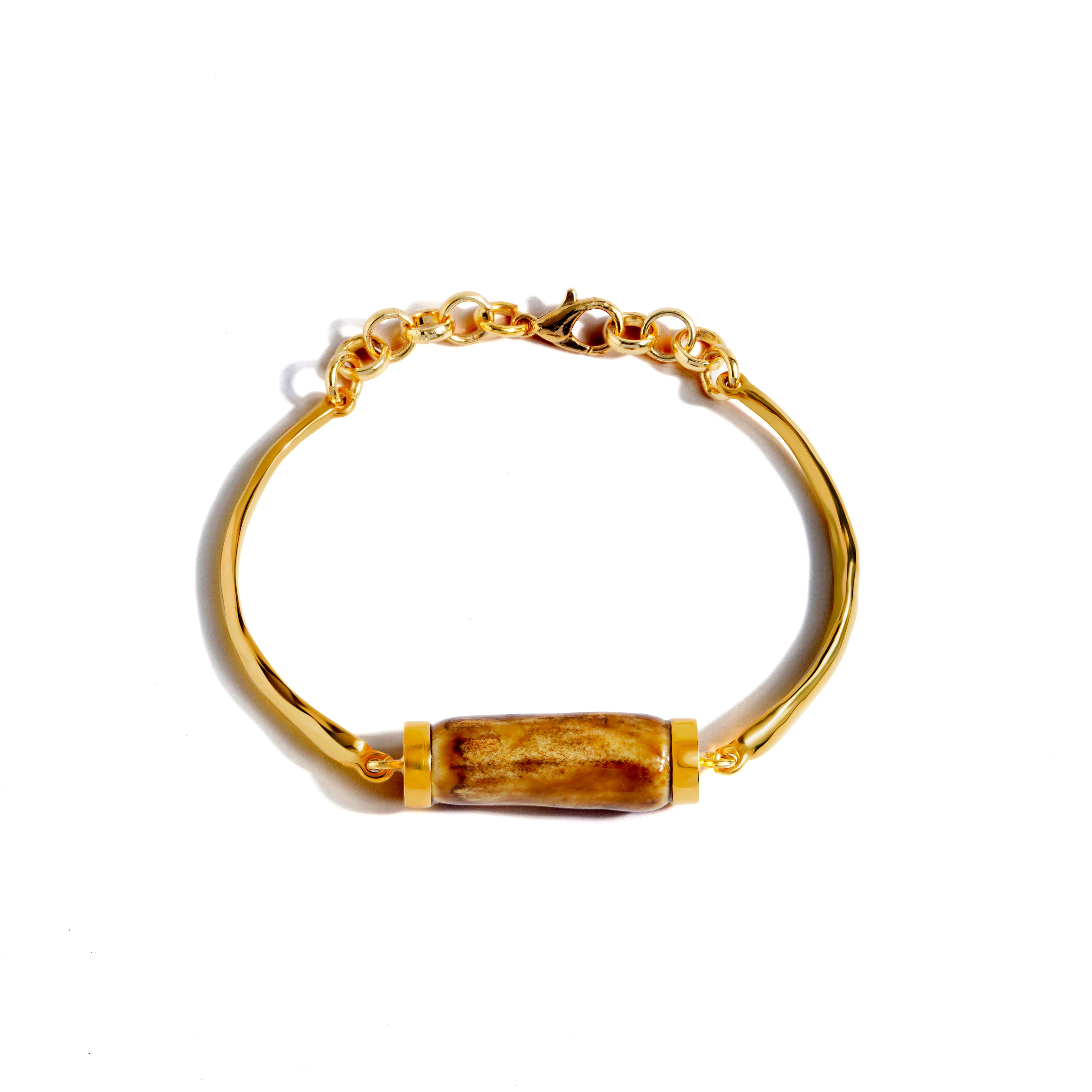 22 K gold plated cuff with hand sculptured porcelain stone in the middle