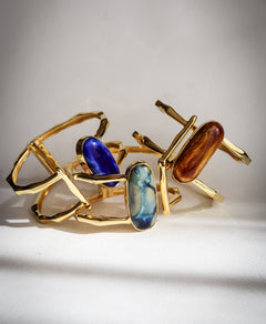 22 K gold plated cuff with hand sculptured porcelain stone in the middle