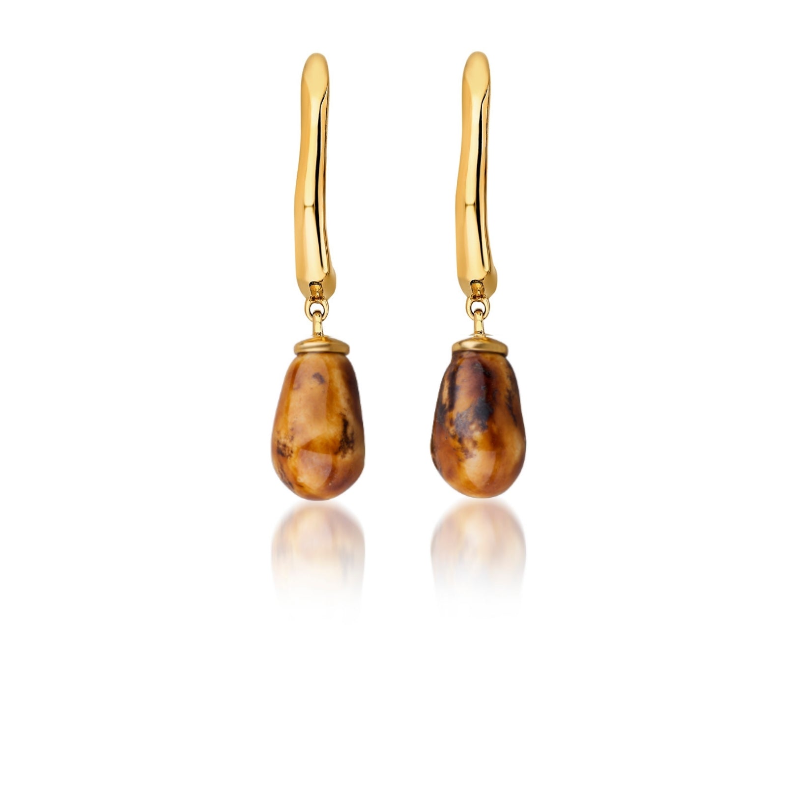 22 K gold plated horseshoe earrings with hand sculptured porcelain drops.