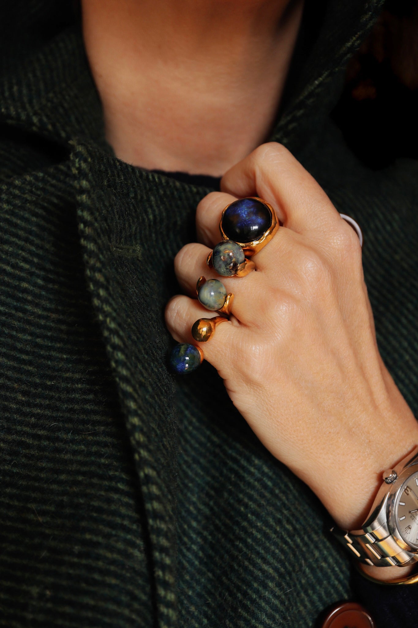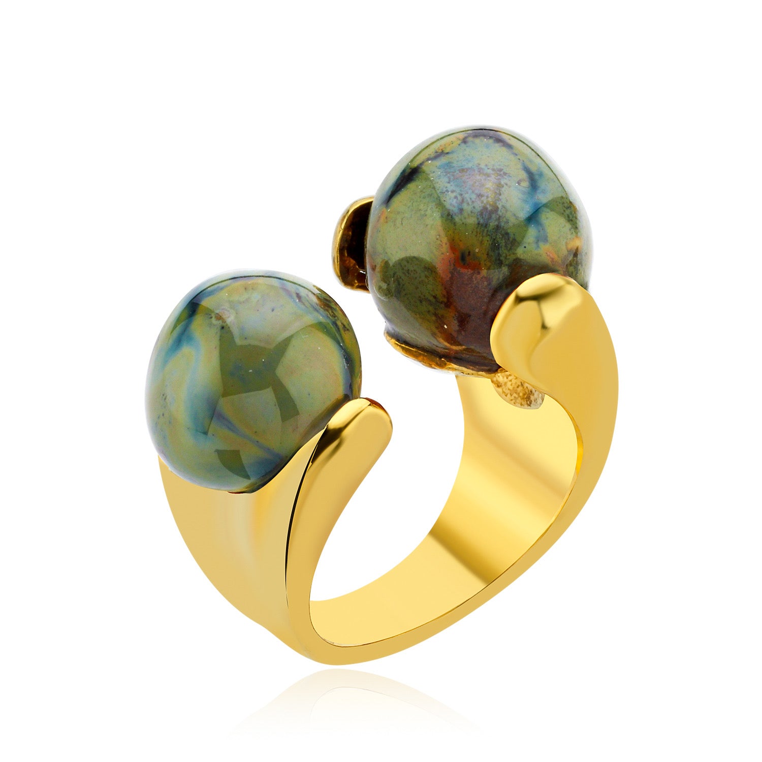 22 K gold plated ring with hand sculptured porcelain stone set.