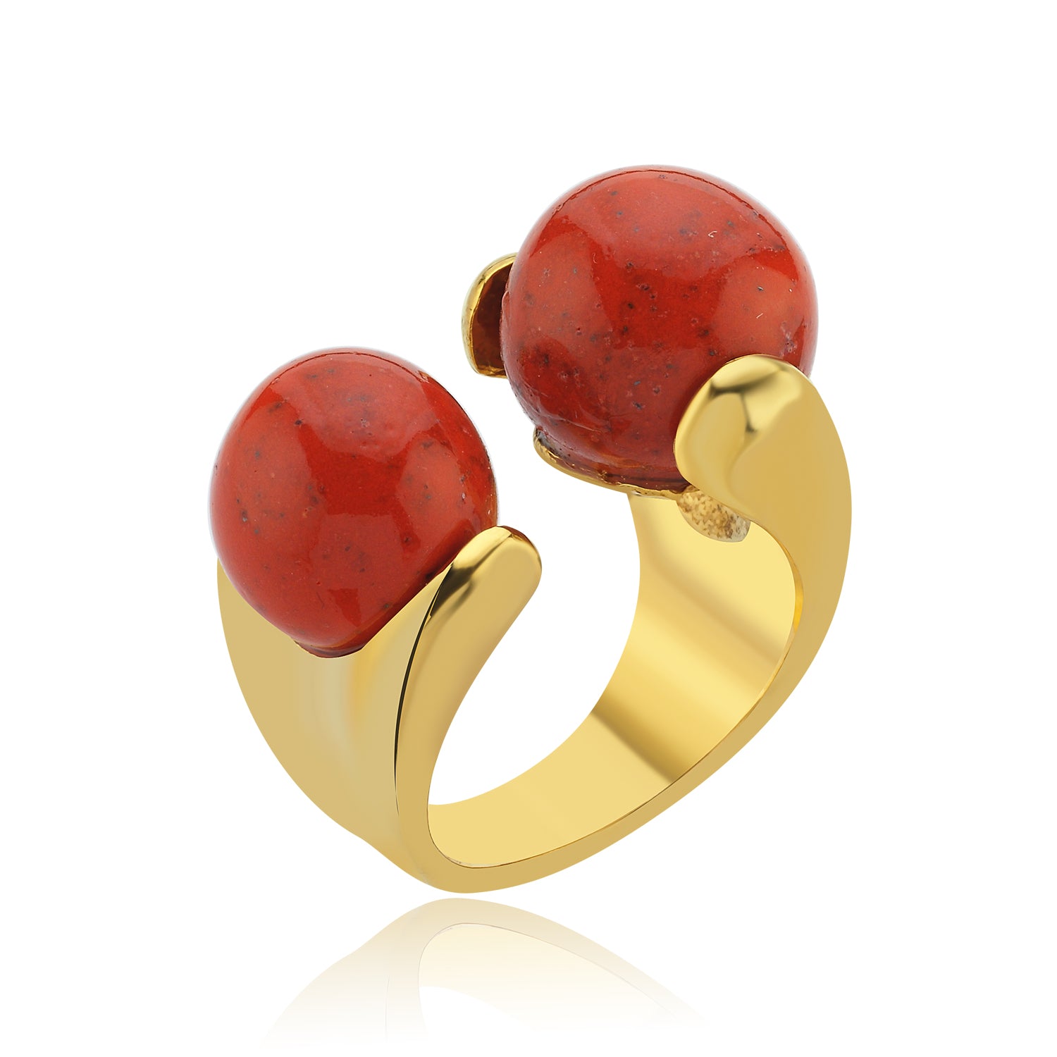 22 K gold plated ring with hand sculptured porcelain stone set.