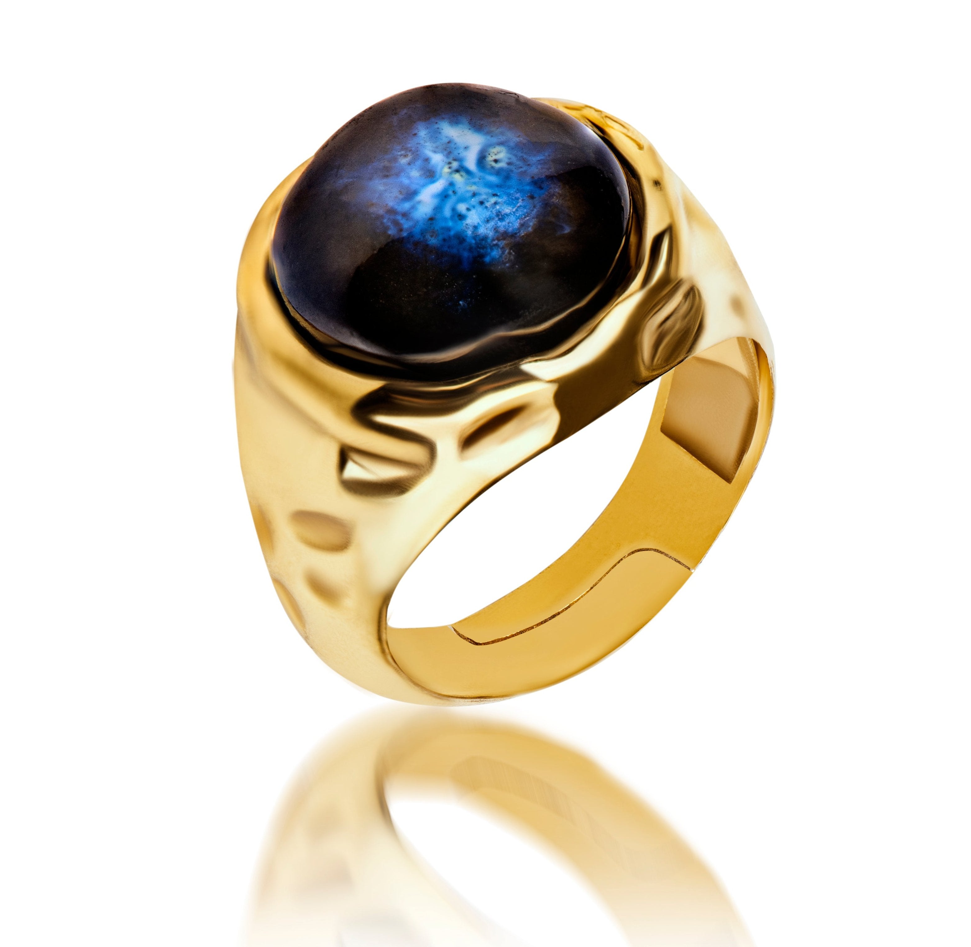 22 K gold plated ring with hand sculptured porcelain stone SET