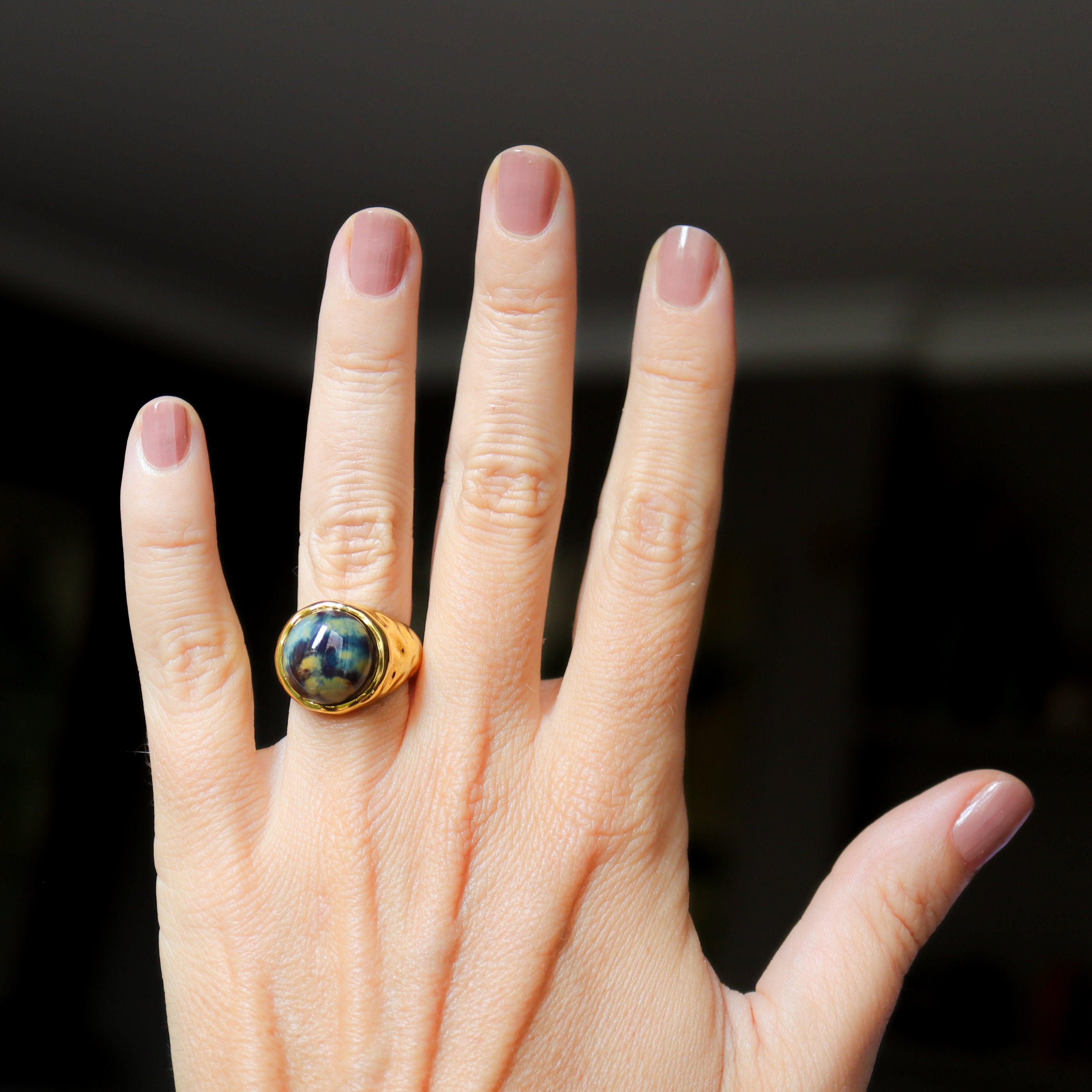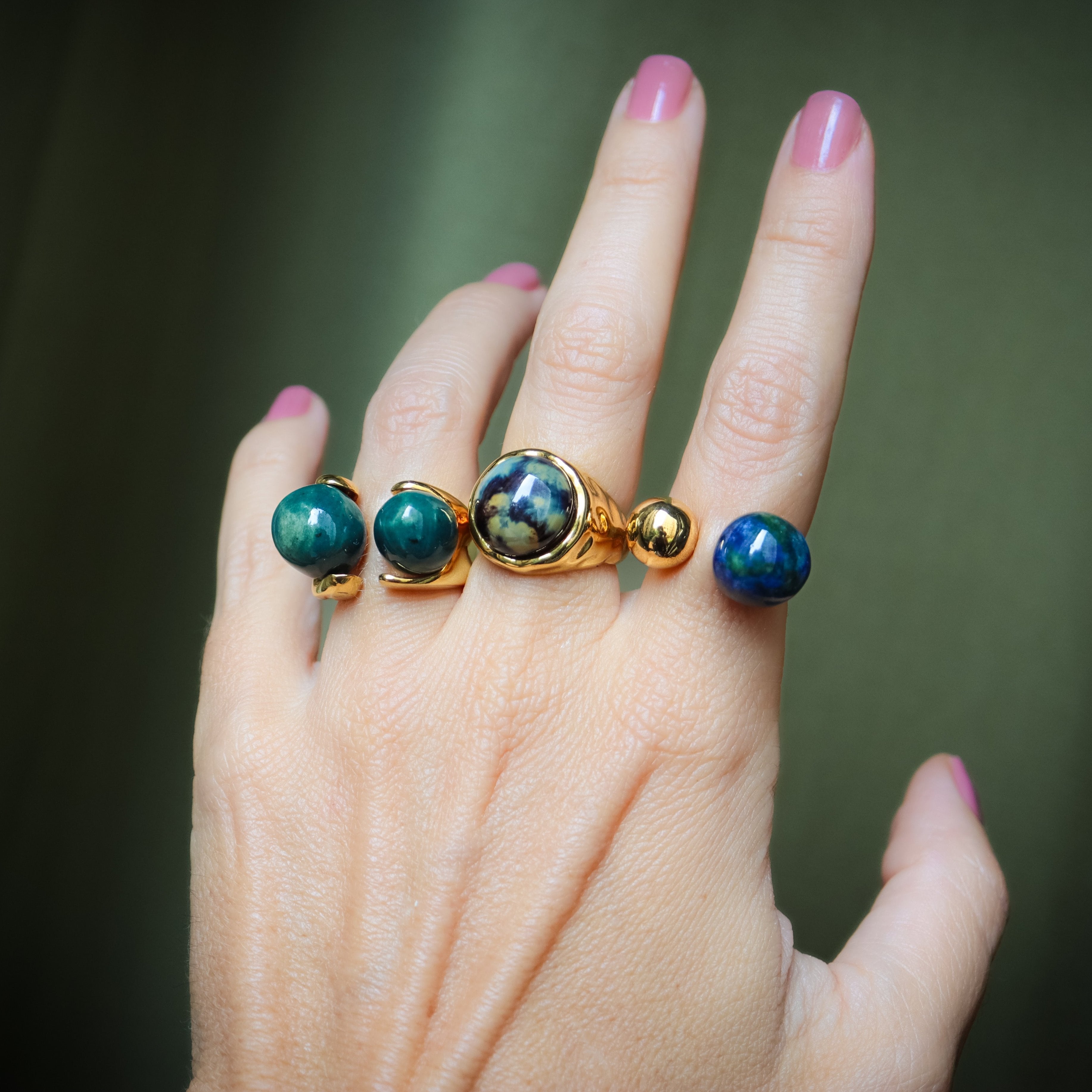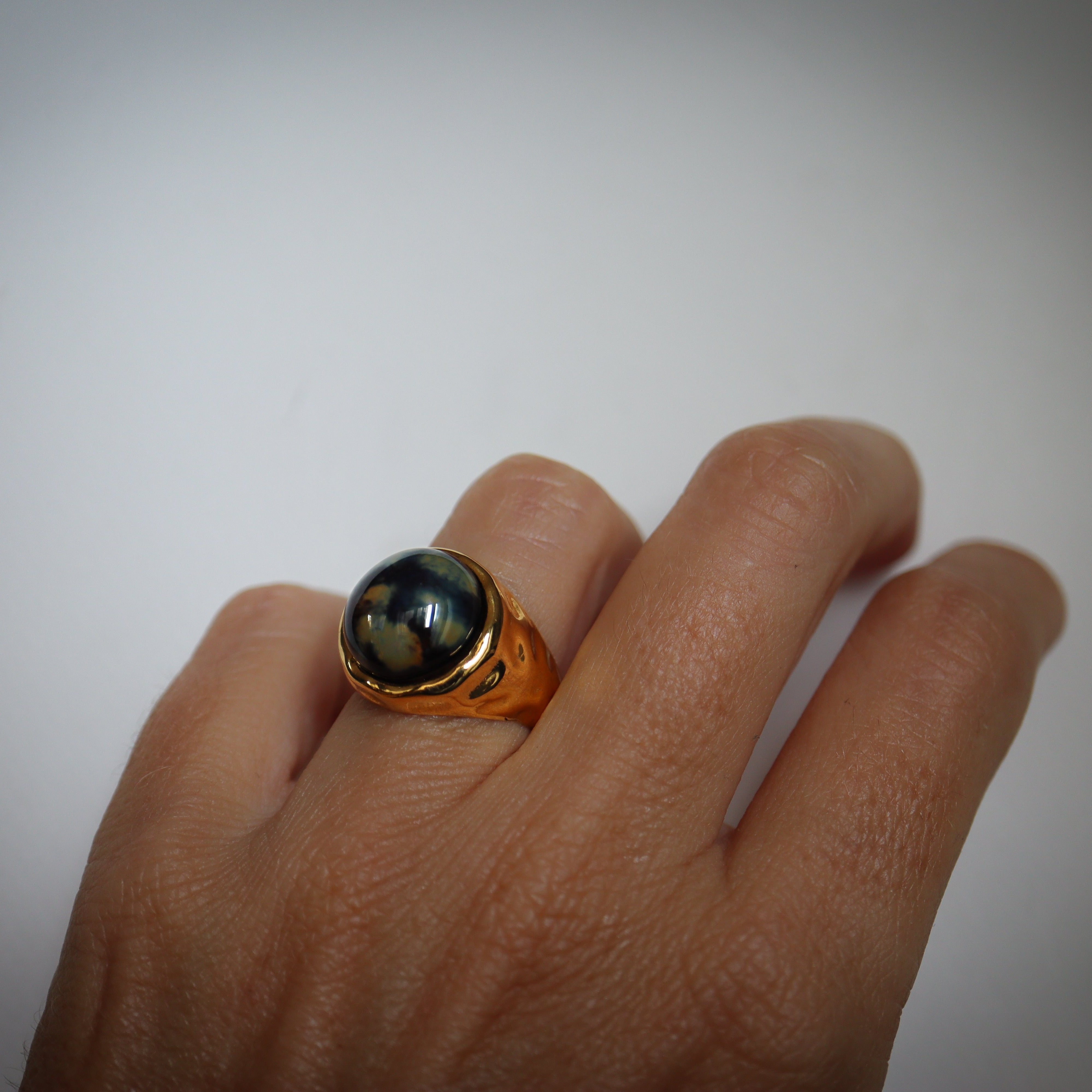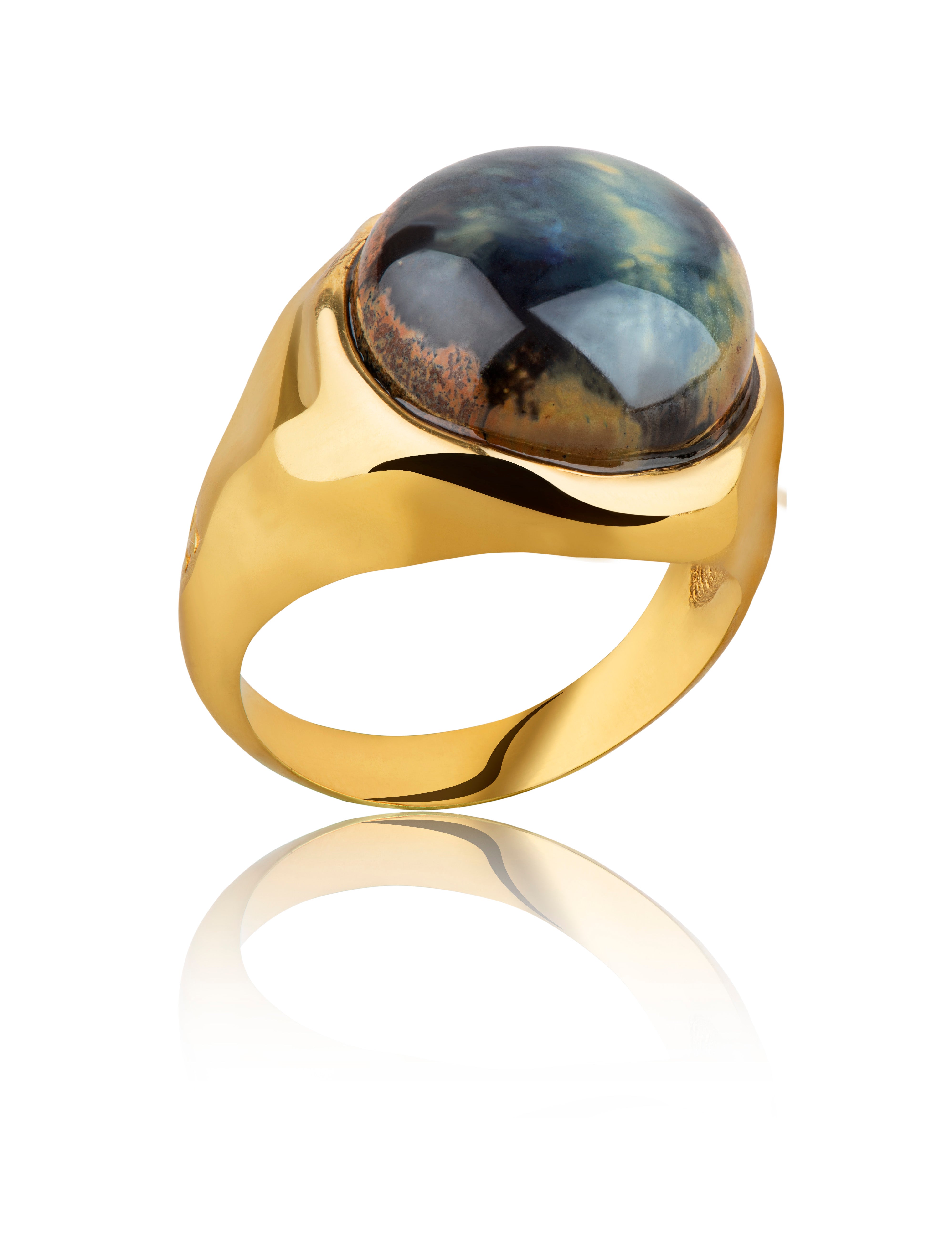 22 K gold plated ring with hand sculptured porcelain stone SET