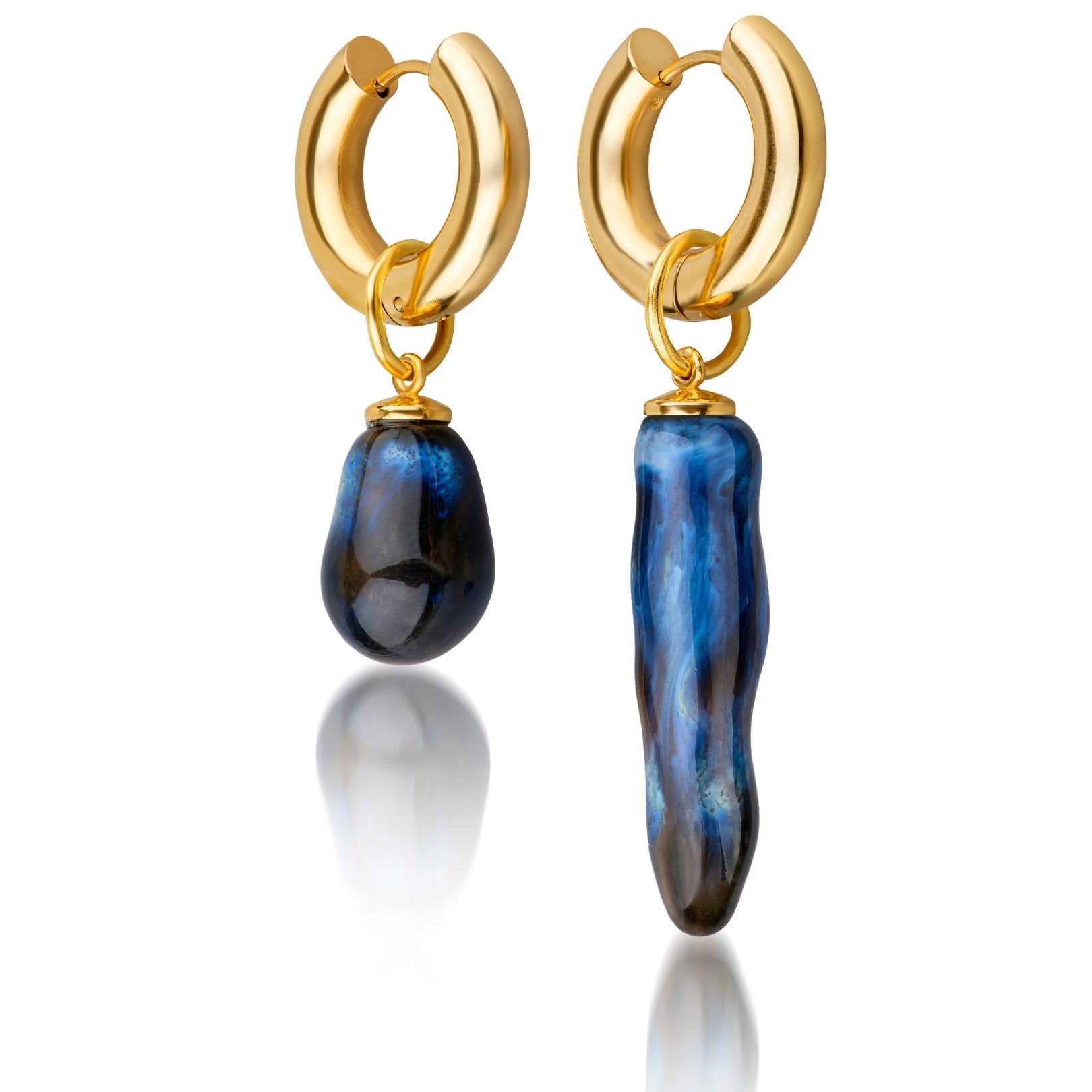 22 K gold plated bold hoop earrings with hand sculptured porcelain stones.
