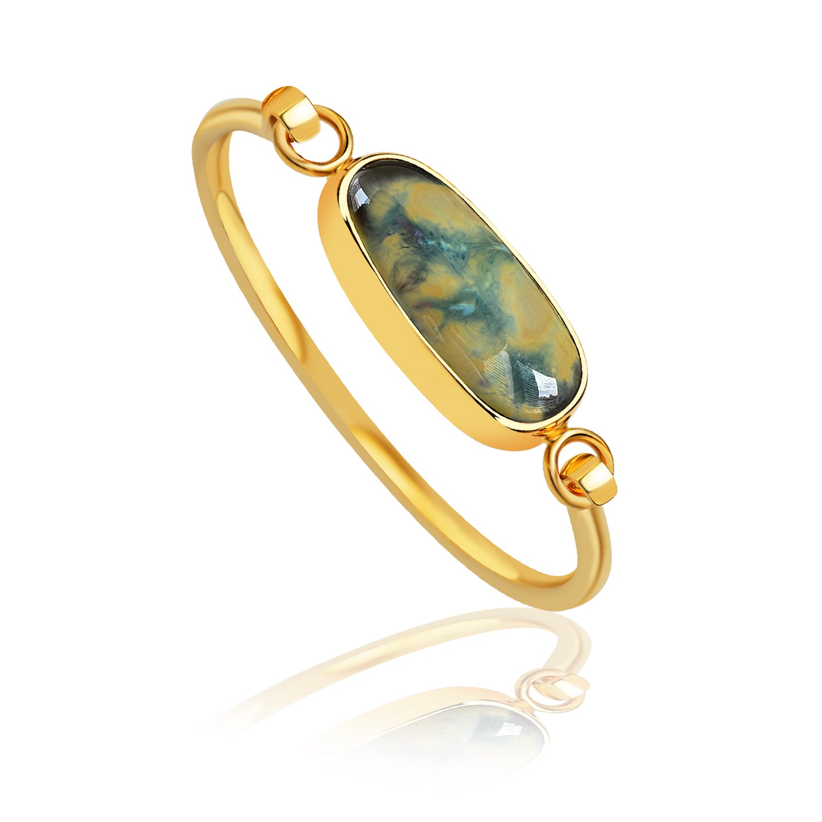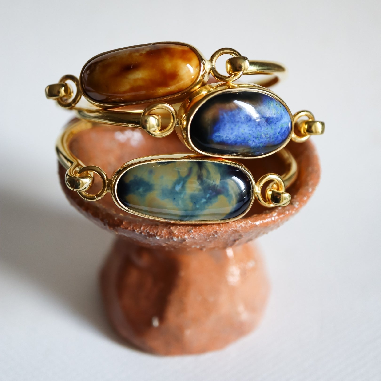 22 K gold plated cuff with hand sculptured porcelain balls.