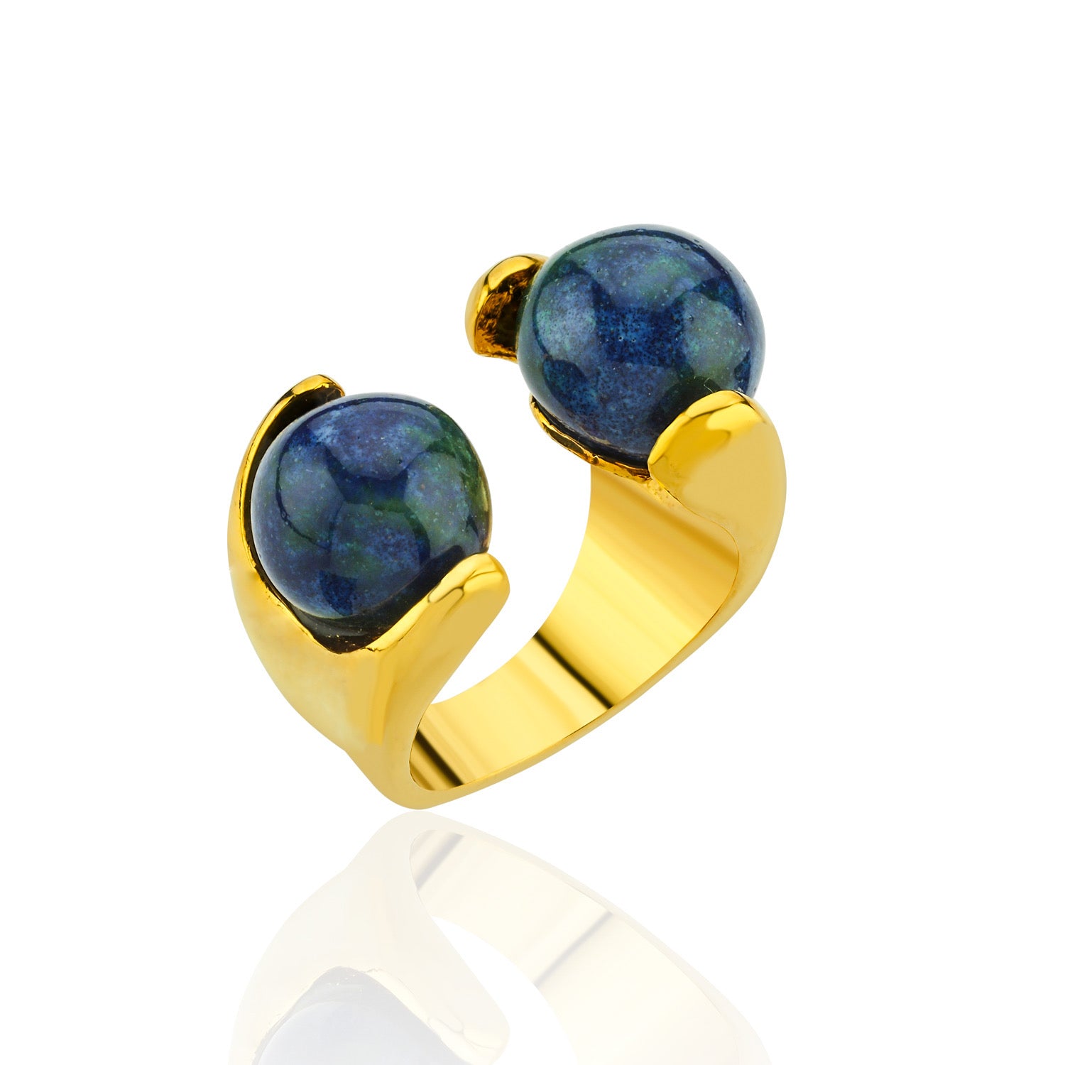 22 K gold plated ring with hand sculptured porcelain stone set.