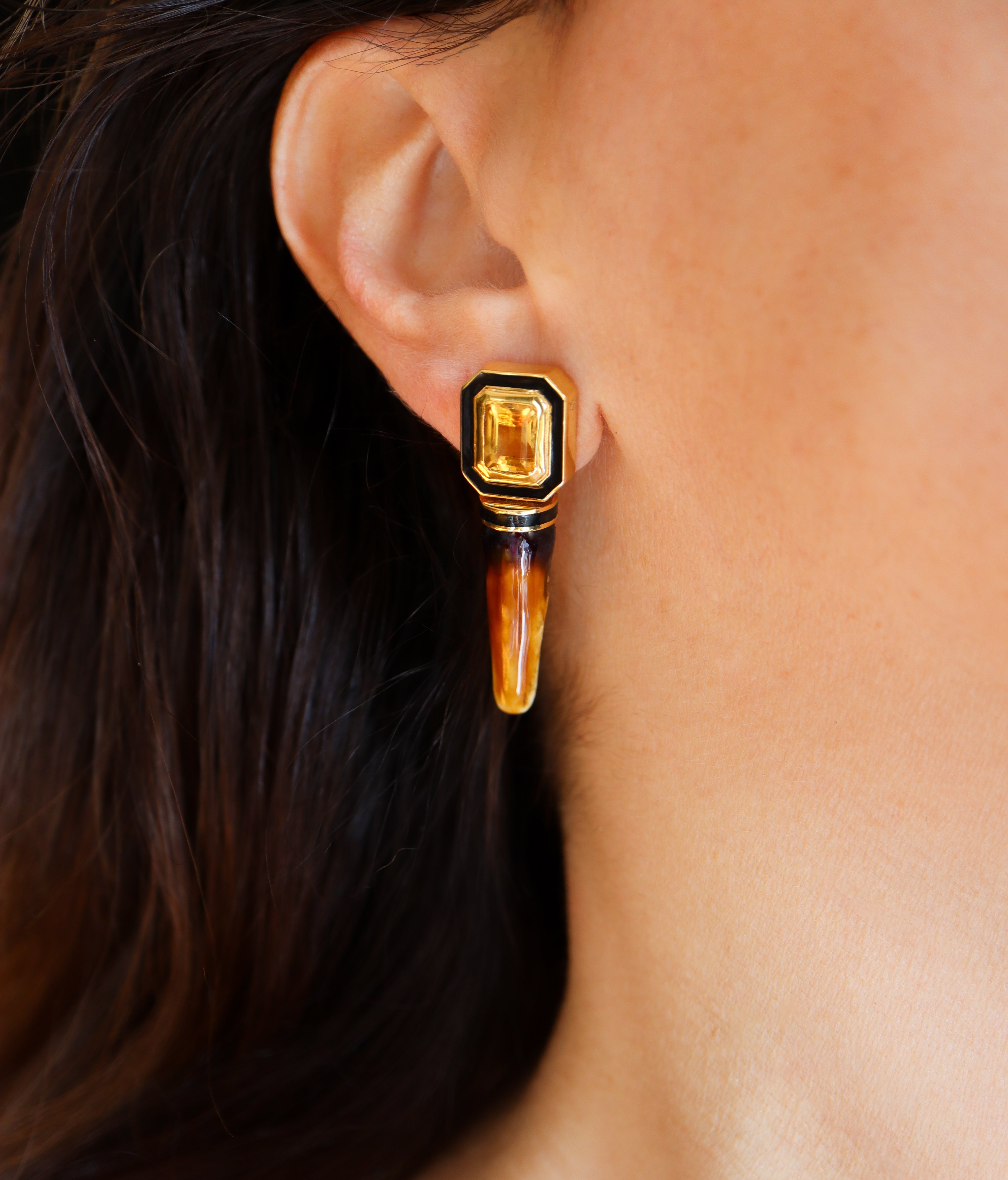 Opulent Deco Earrings Citrine Ocean Twig Amber