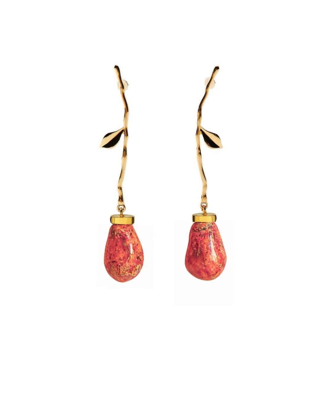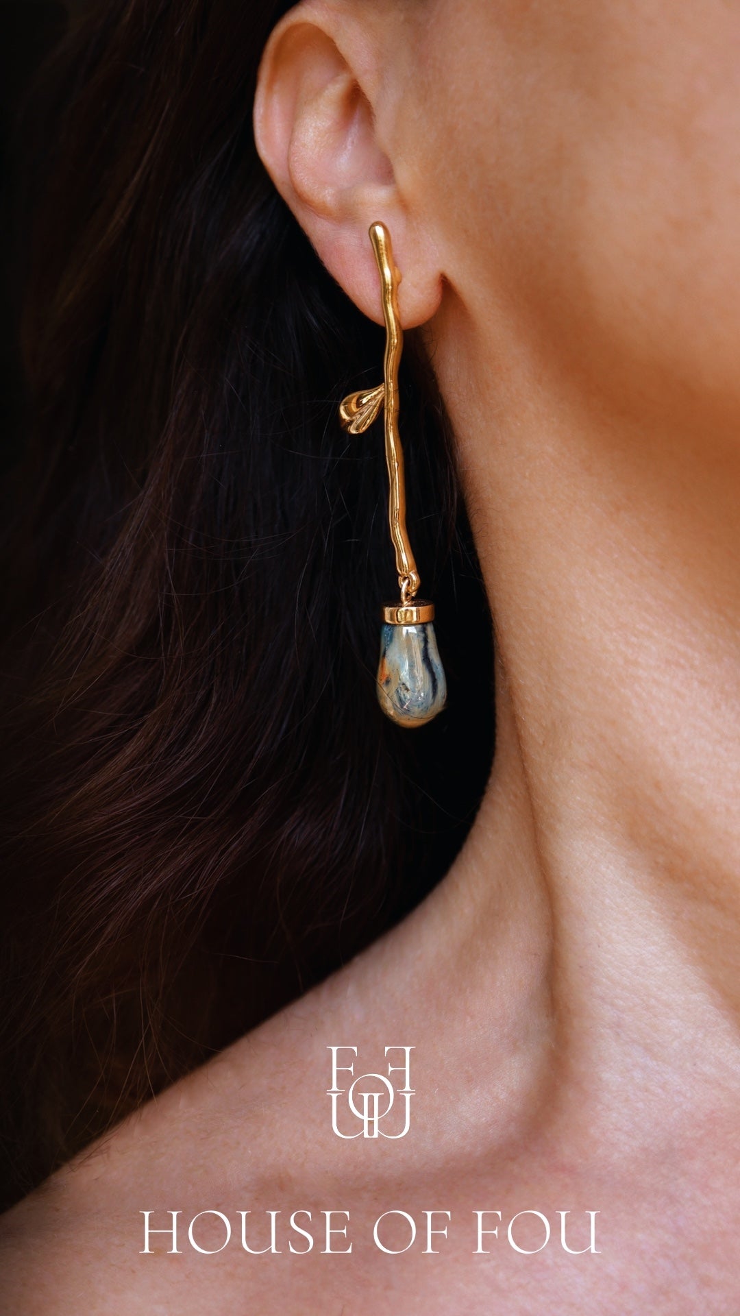22 K gold plated earrings with hand sculptured porcelain drops.