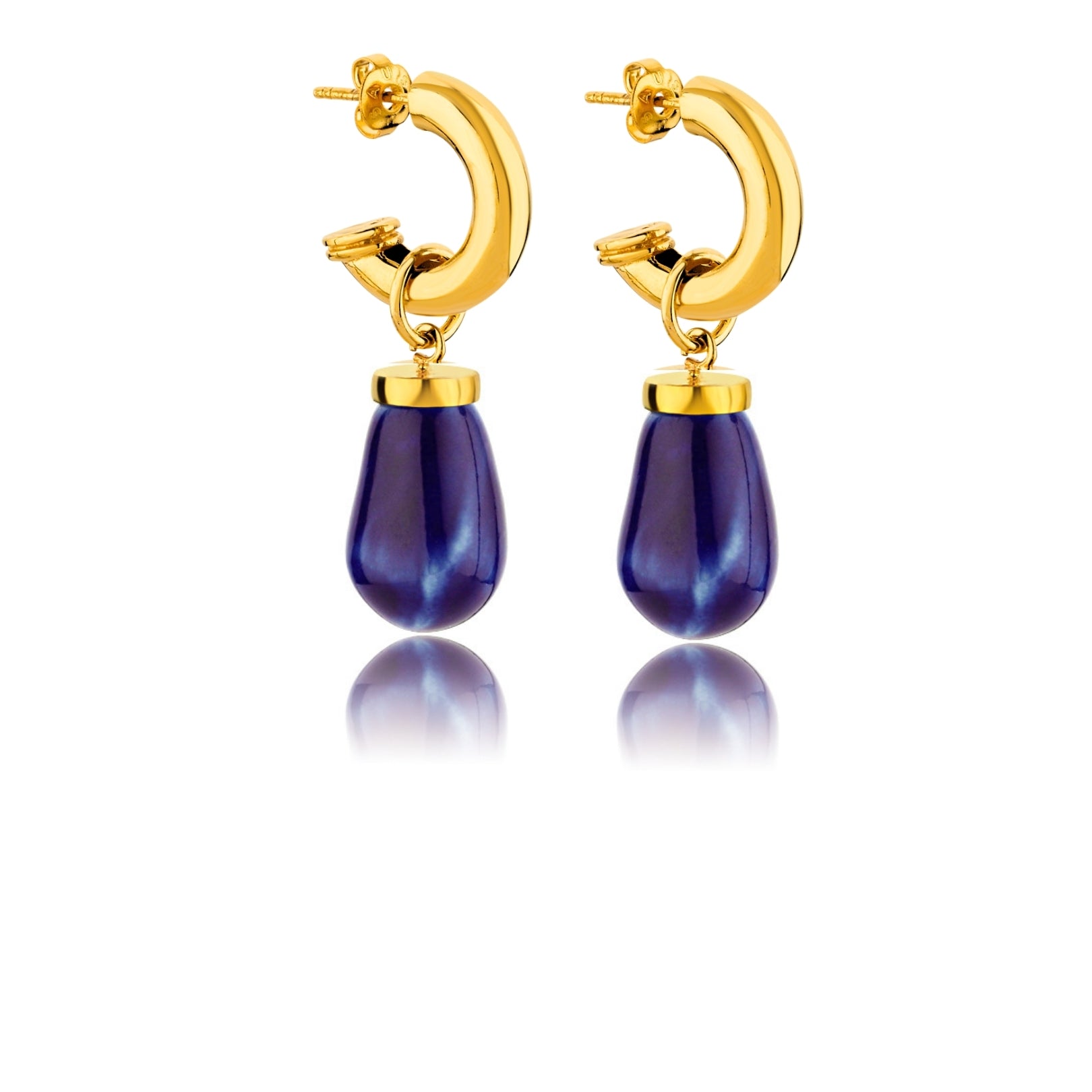 22 K gold plated bold hoop earrings with hand sculptured porcelain drops.