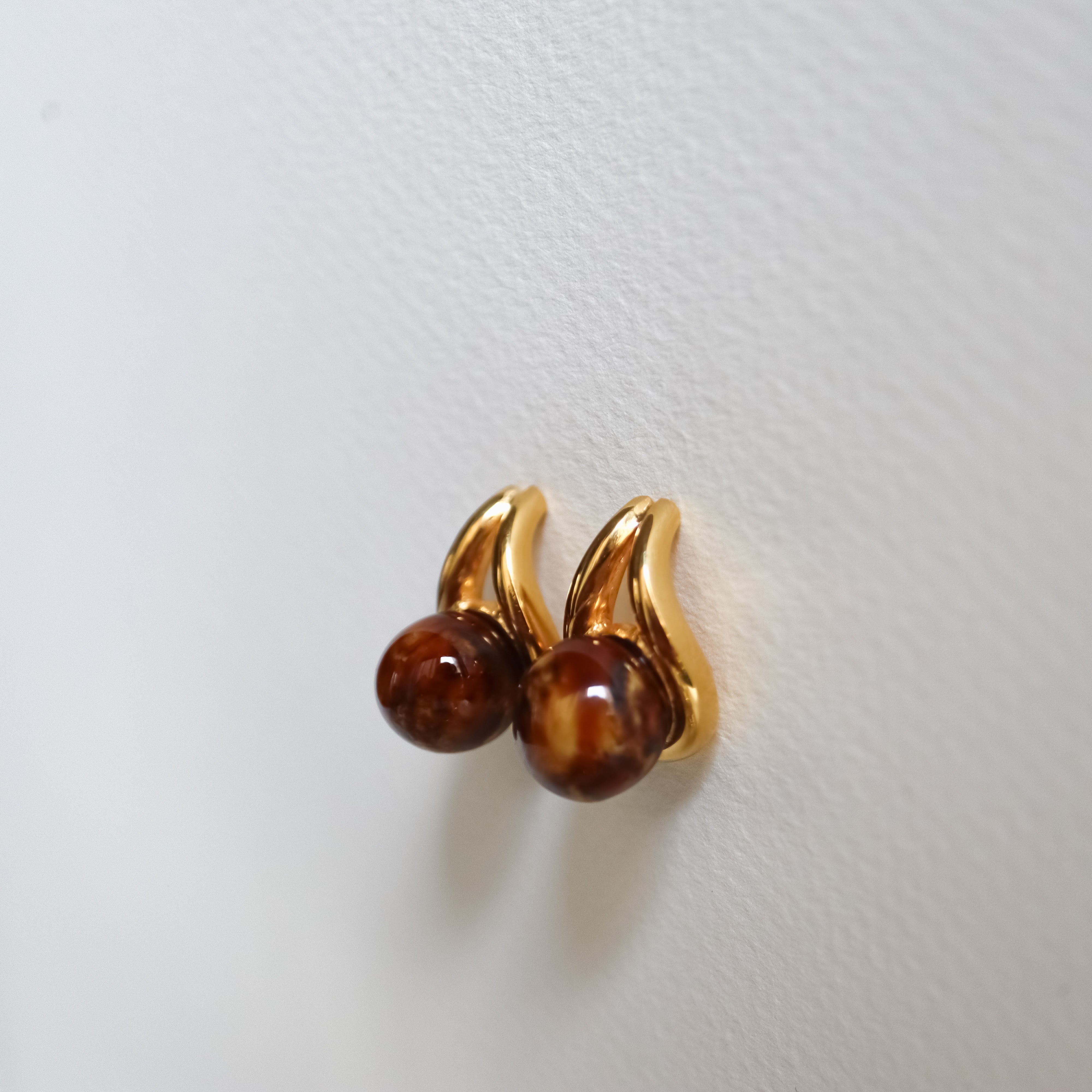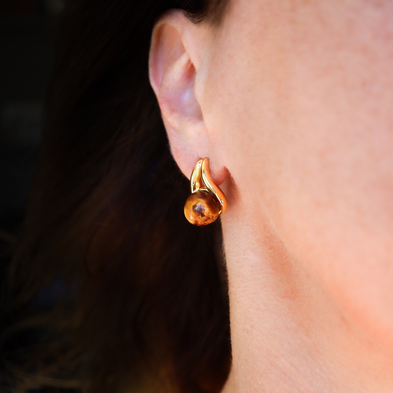 22 K gold plated stud earrings with hand sculptured porcelain balls stud