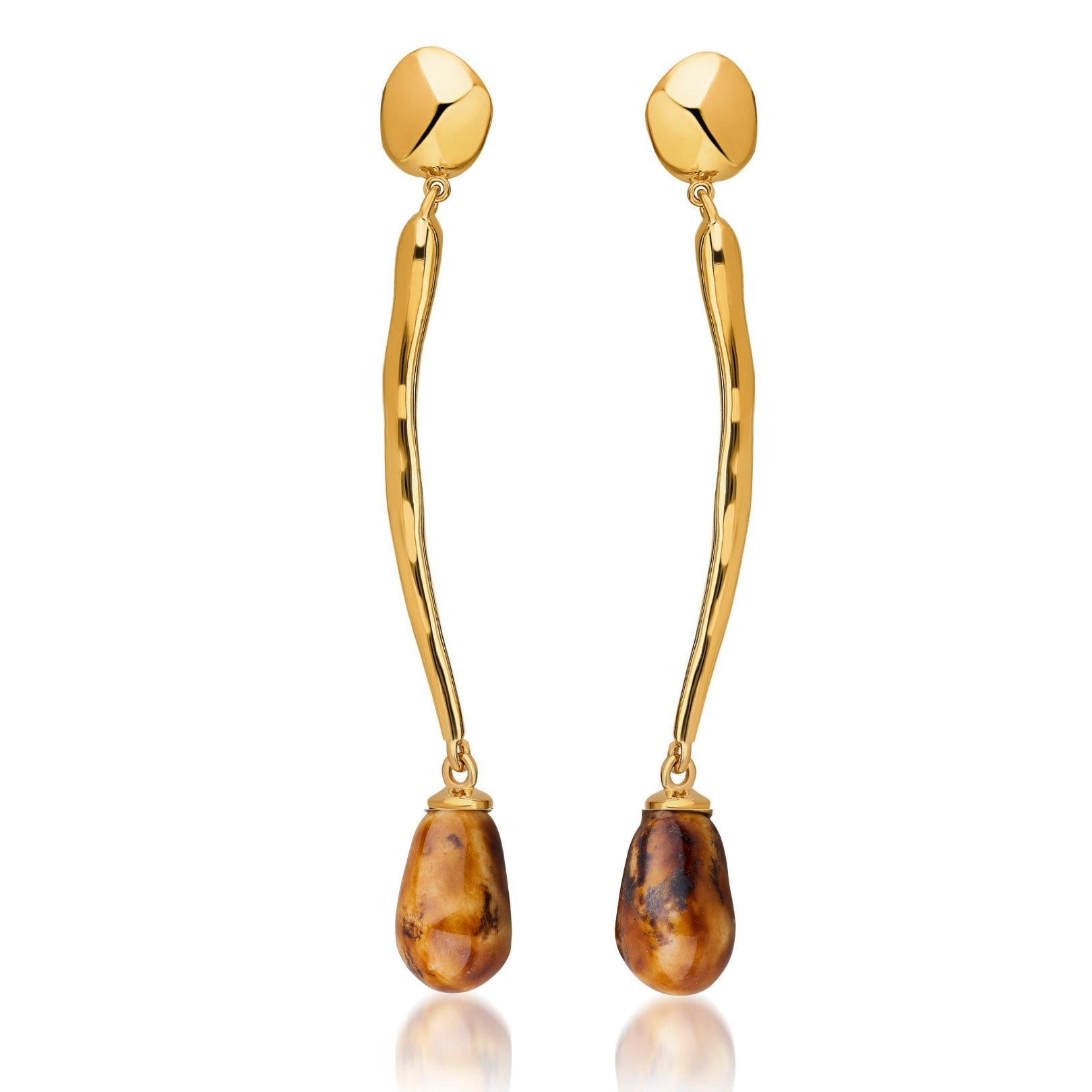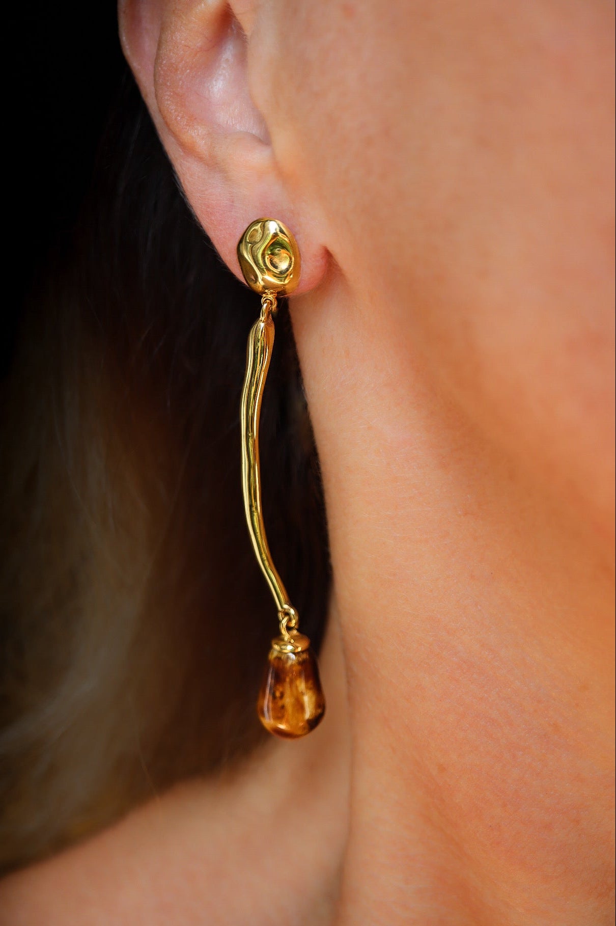 22 K gold plated horn shape earrings with hand sculptured porcelain drops.