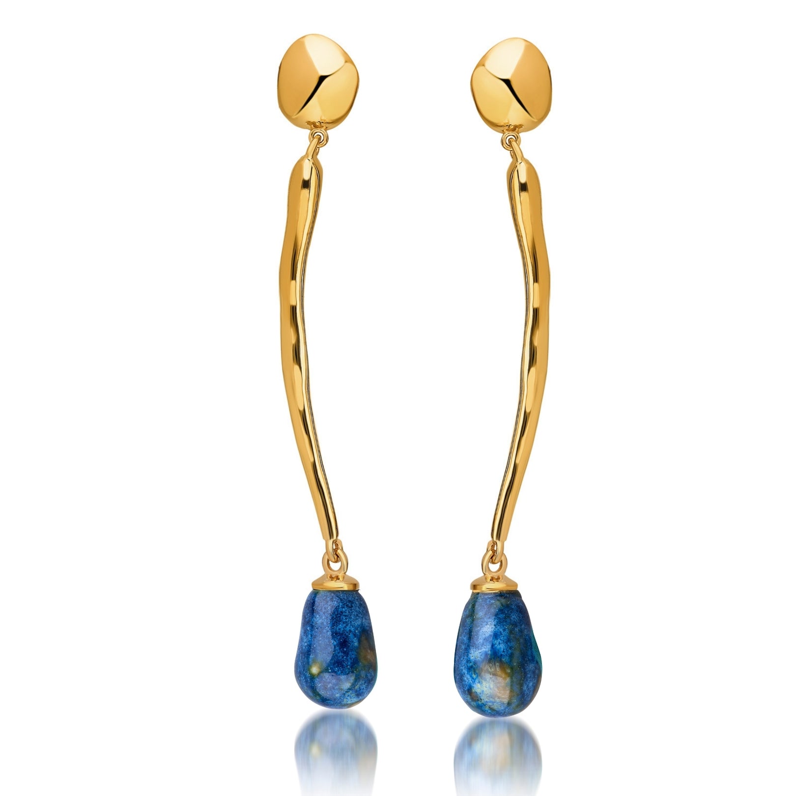 22 K gold plated bold hoop earrings with hand sculptured porcelain drops.